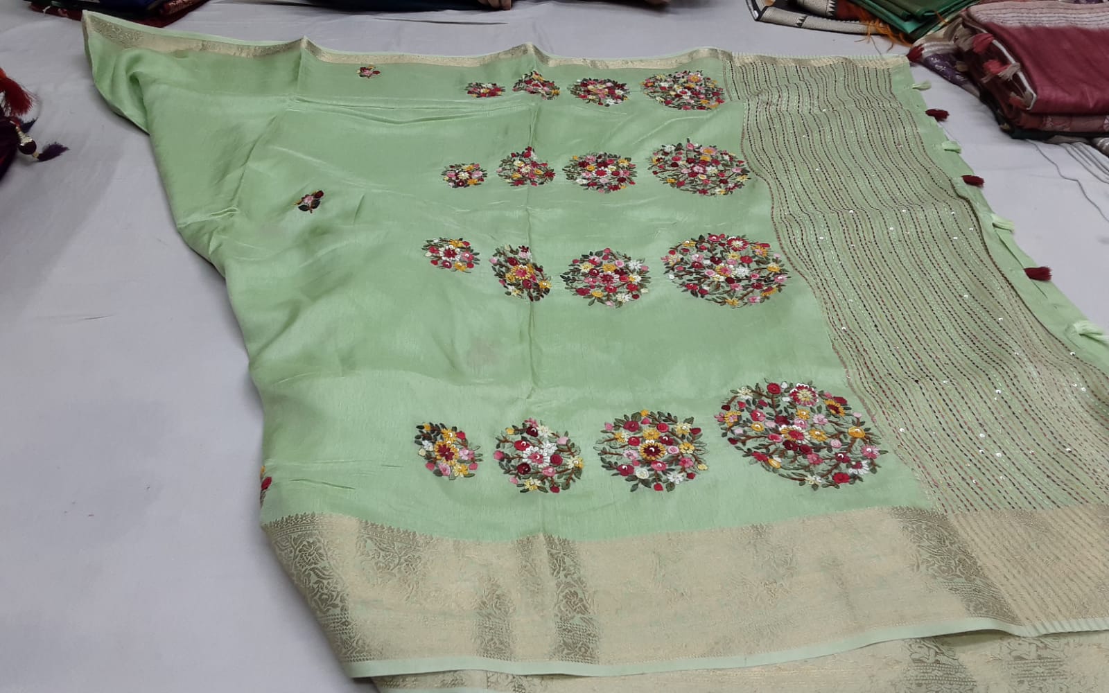 Mint green embroidery sari