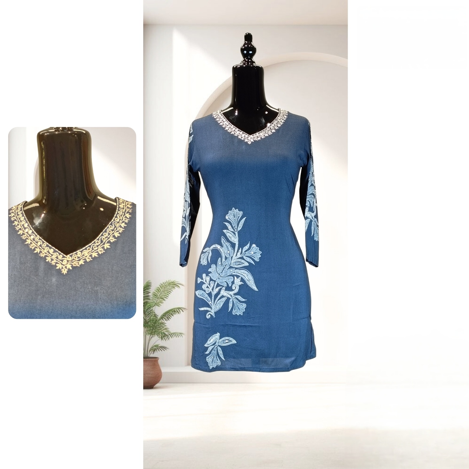 Denim blue embroidery kurti
