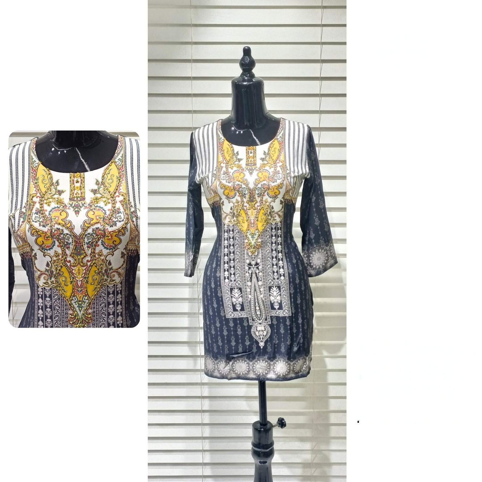Black printed rayon kurti