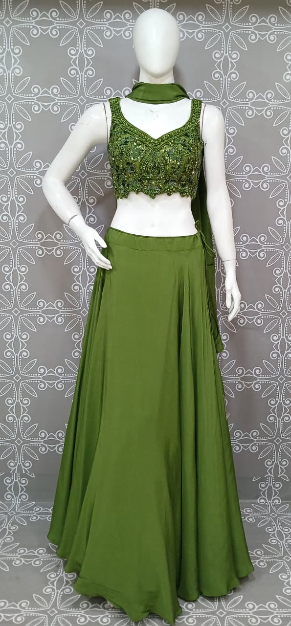 This green color sari is made in 100% pure banarsi hand weaving khaddi gorgett fabric with hand tye and dye bandhni design.