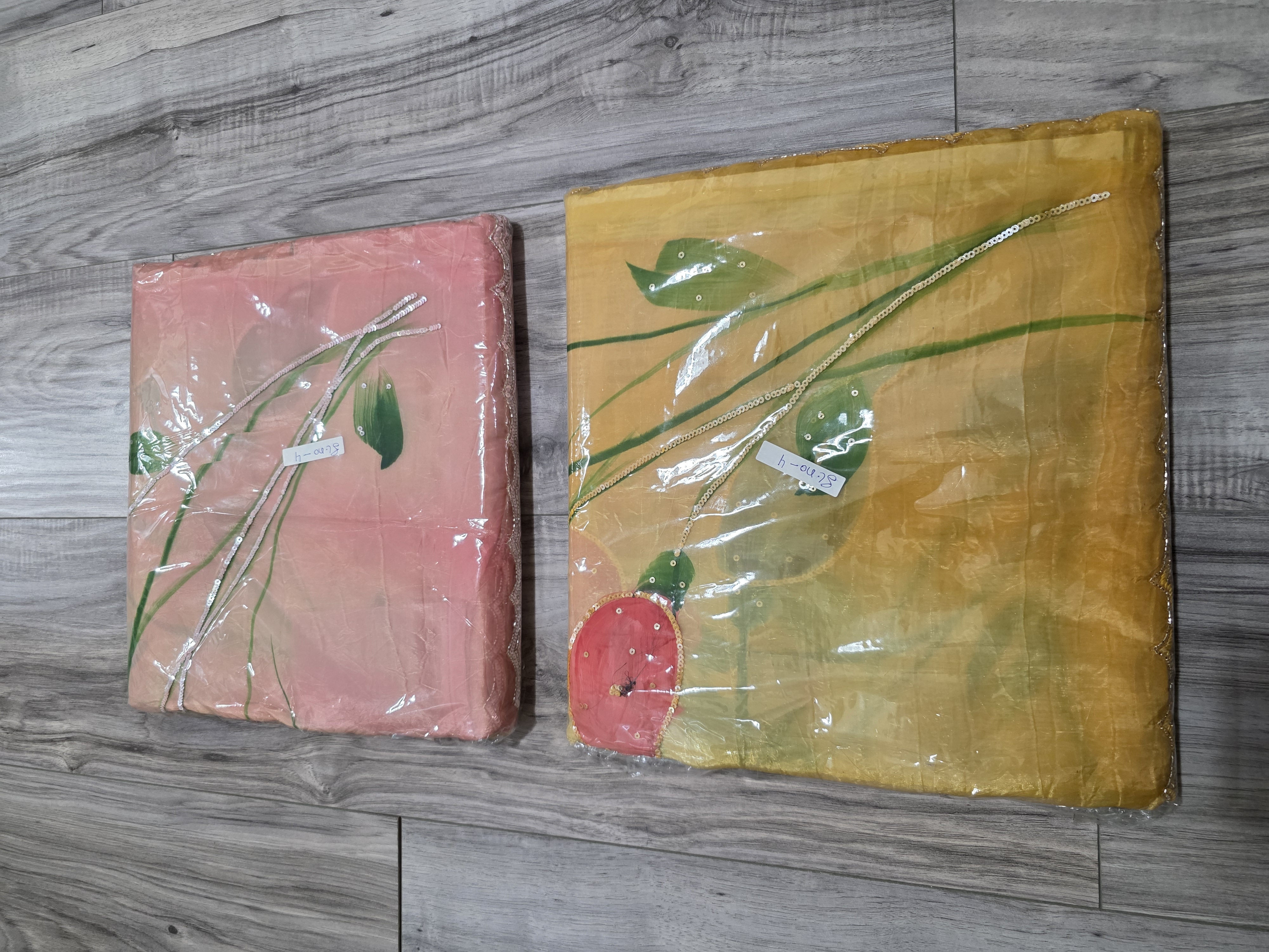 Hand painted floral organza tissue sari has hand sequin highlight all over.
