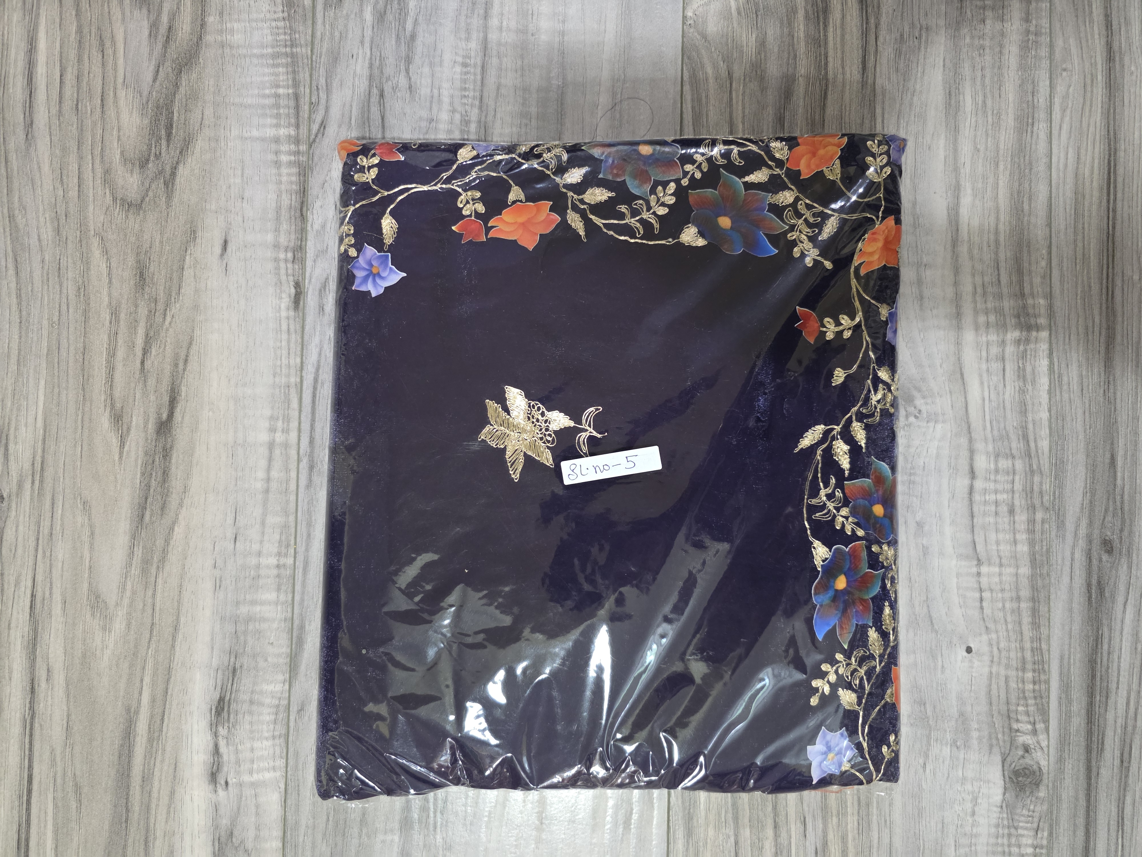Eggplant purple sari is made in gorgett shimmer tissue with hand and zari embroidery all over