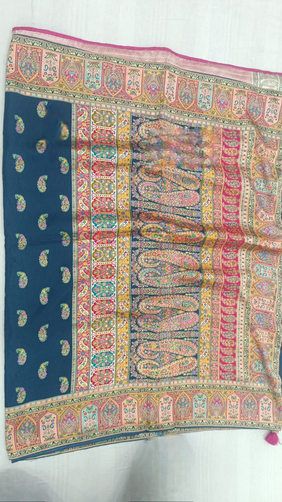 This sari is made in position silk. It is one of the newest and latest material in banarsi silk. Multi color silk thread weaving makes it very vibrant and colorful. Perfect for festive occasions