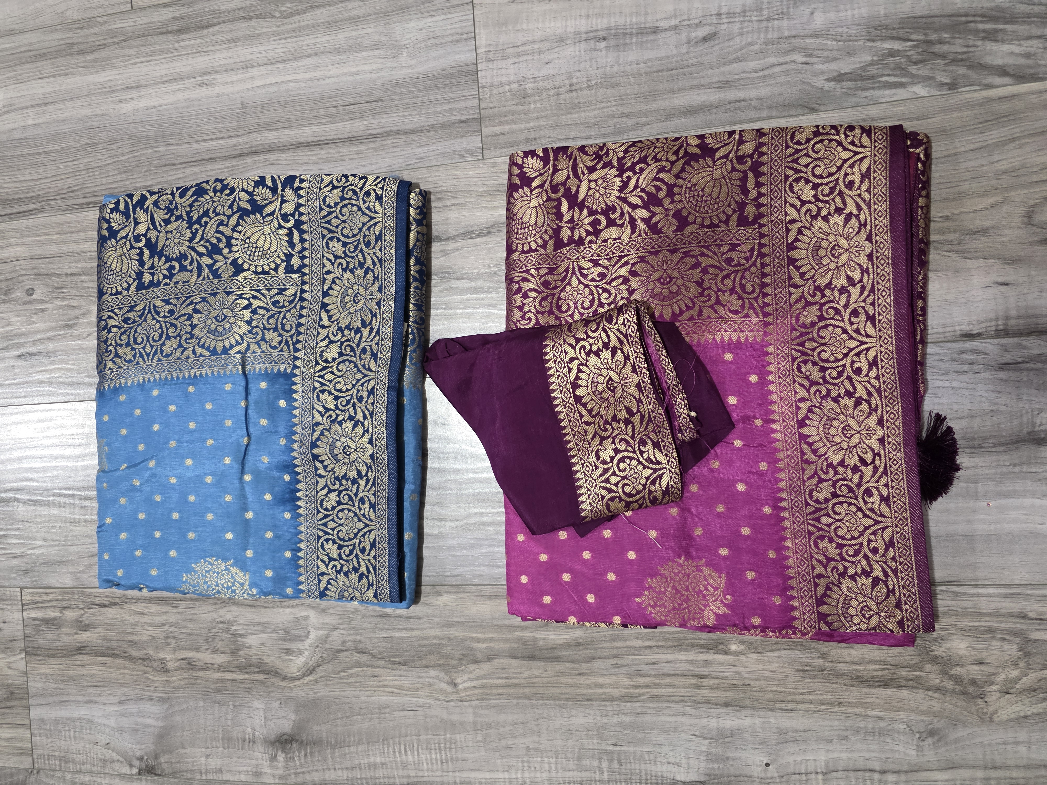 This sari is made of soft banarsi Dola silk fabric. Very light and easy to drape. Dyed in ombre style
