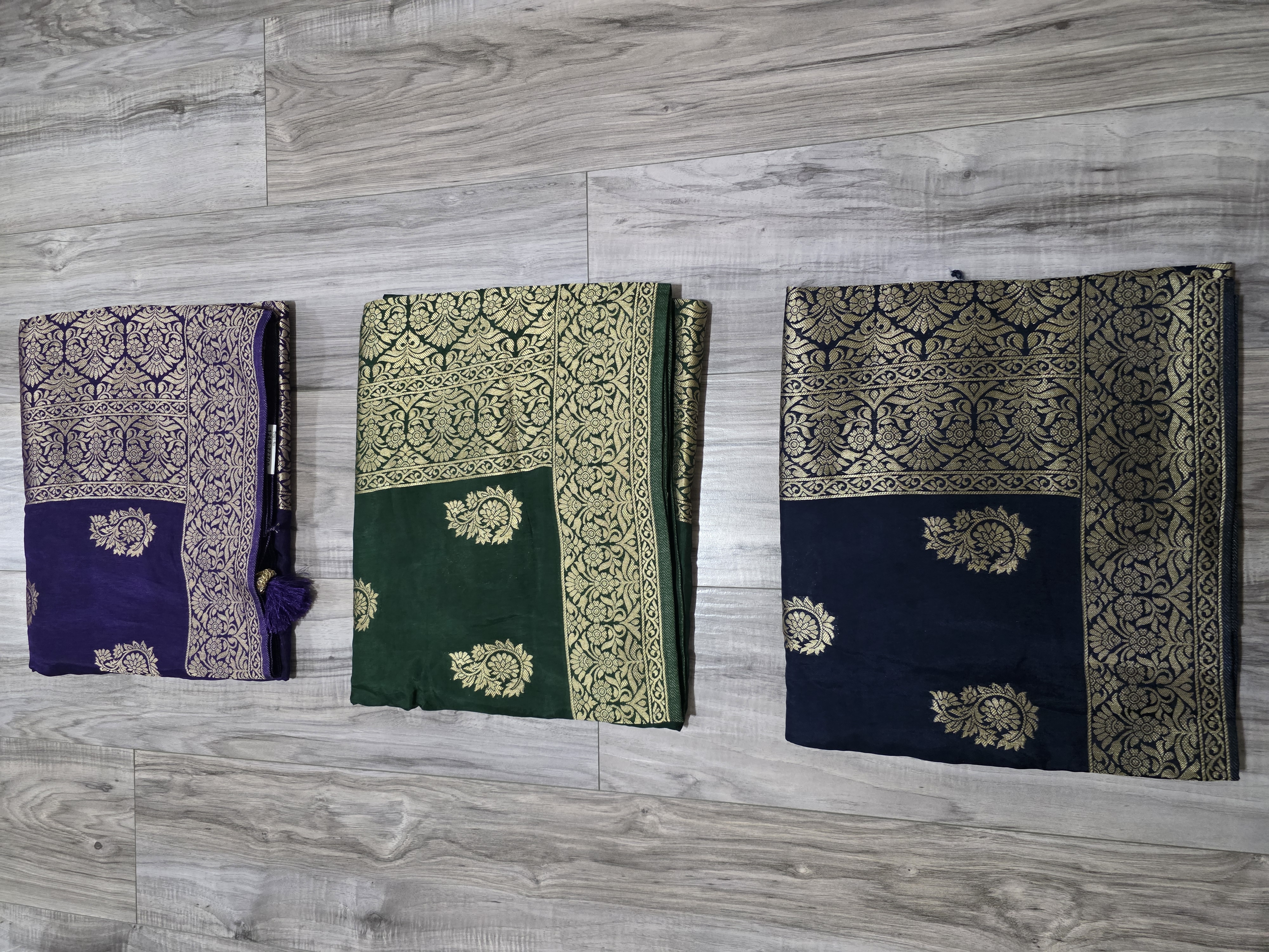 This sari is made of soft banarsi Dola silk fabric. Very light and easy to drape.
