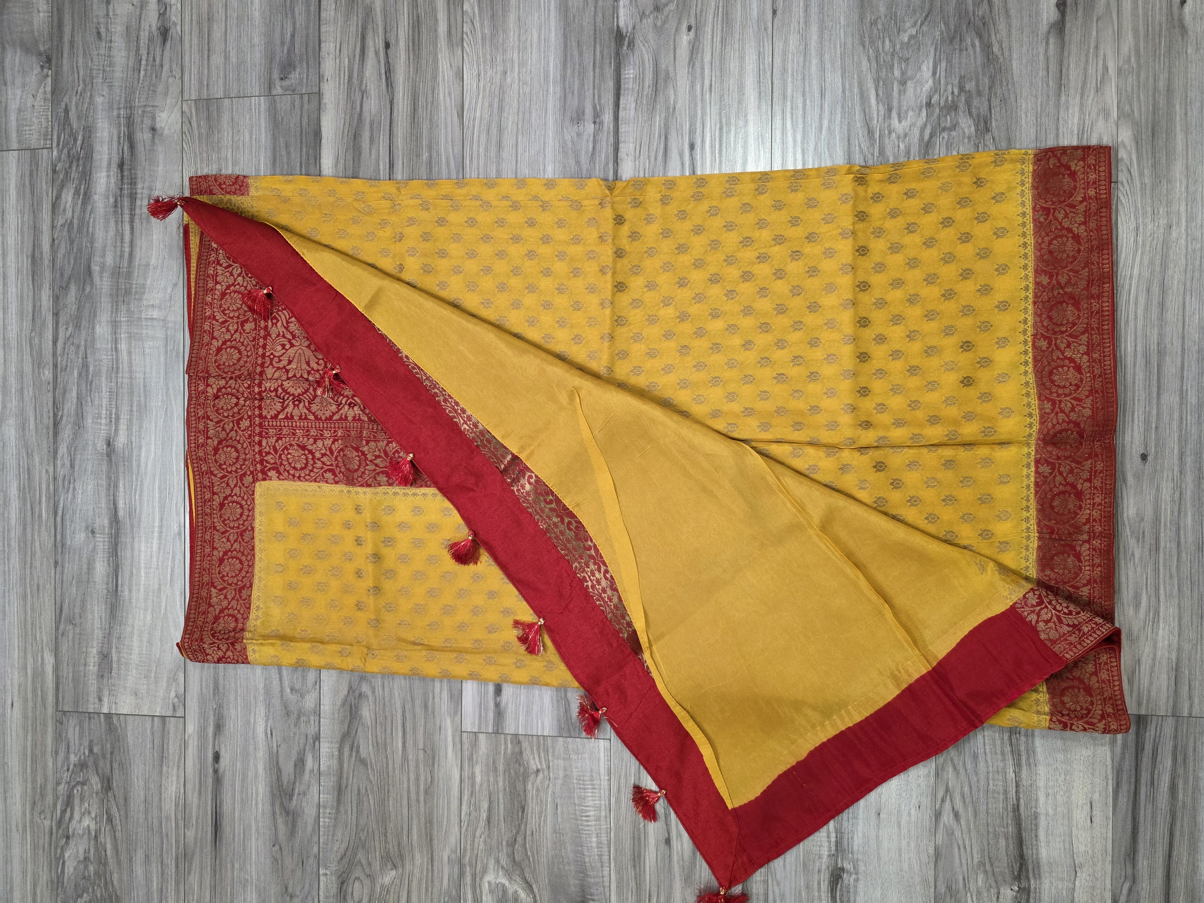 These banarsi Dola silk fabric sari are very soft and light flowy material. Perfect for wedding and festive occasions.