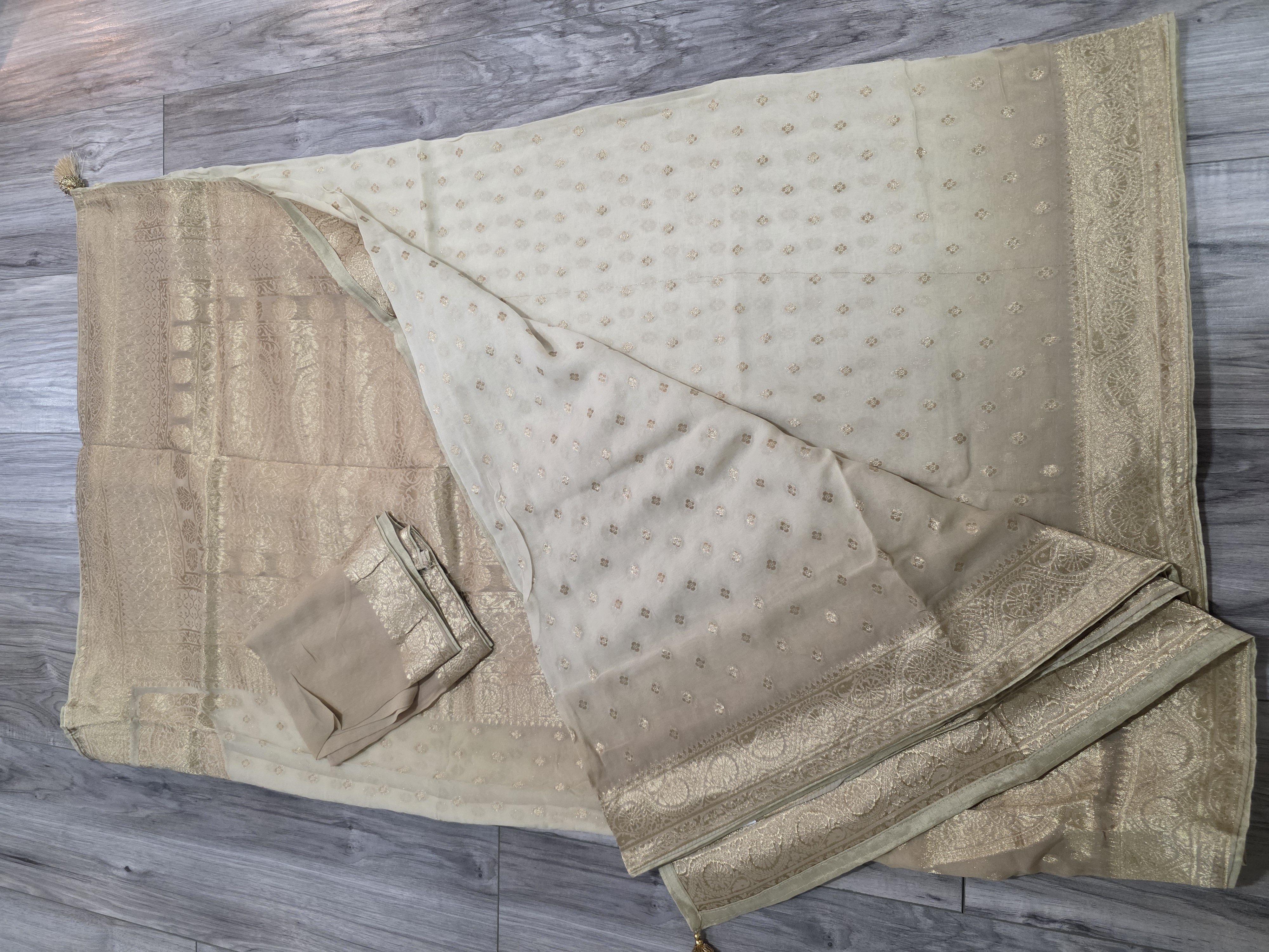 Beige ombre khaddi gorgett sari
