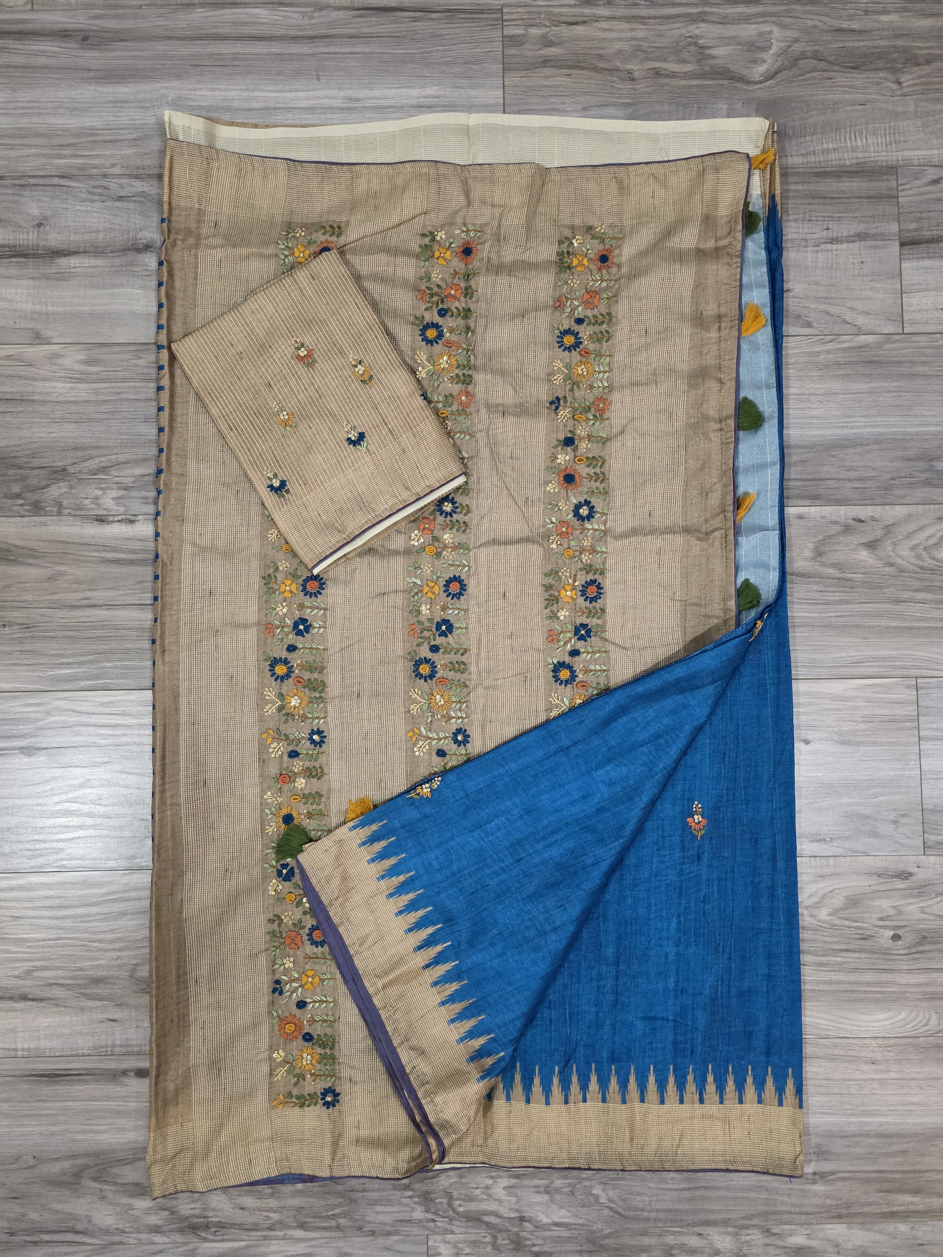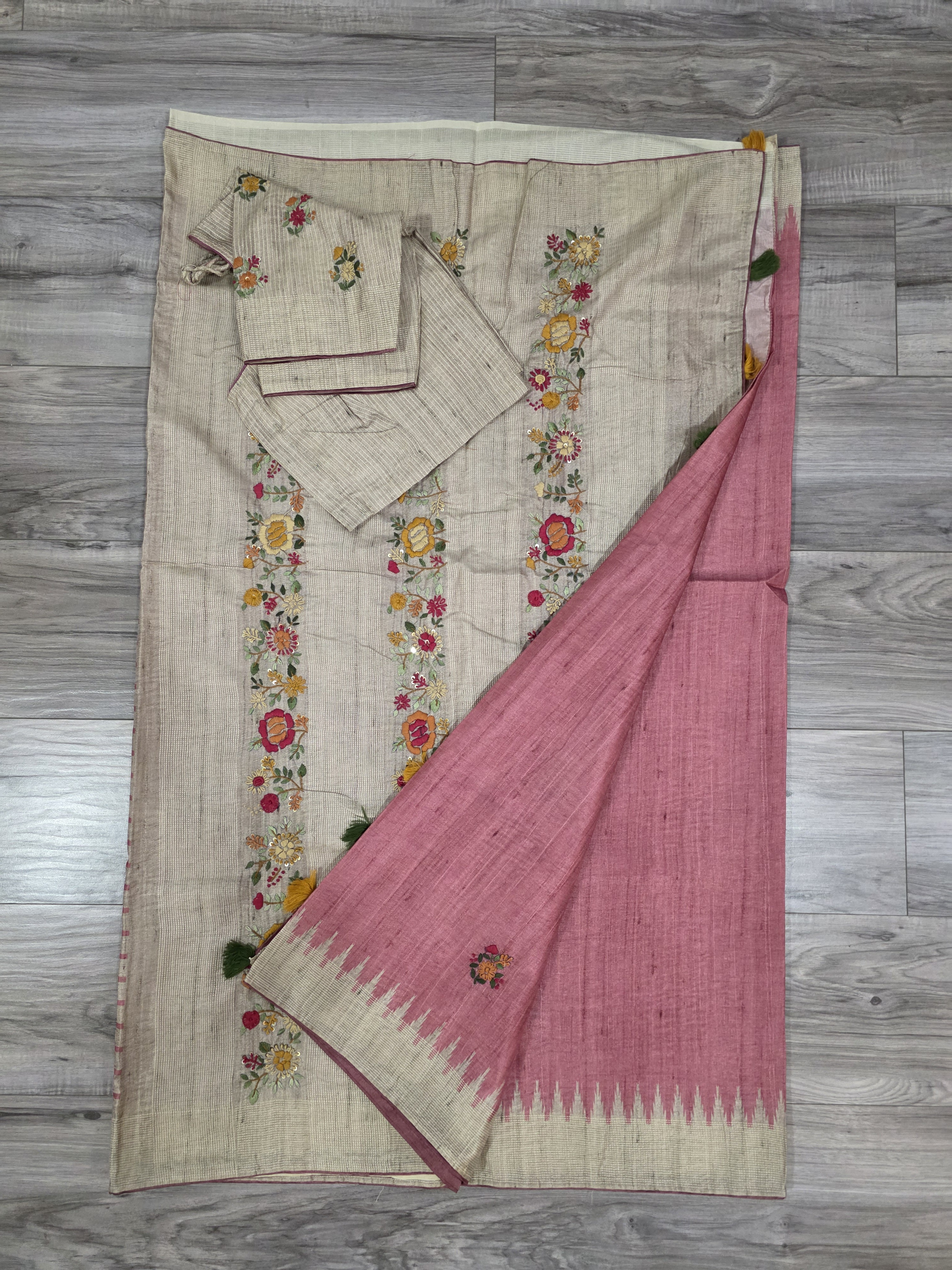 Semi tussar silk sari with thread knot work