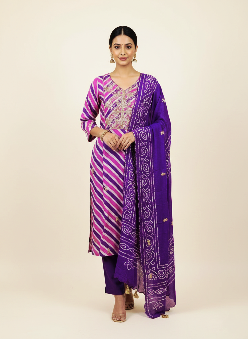 Kota shimmer with hand paint and embroidery