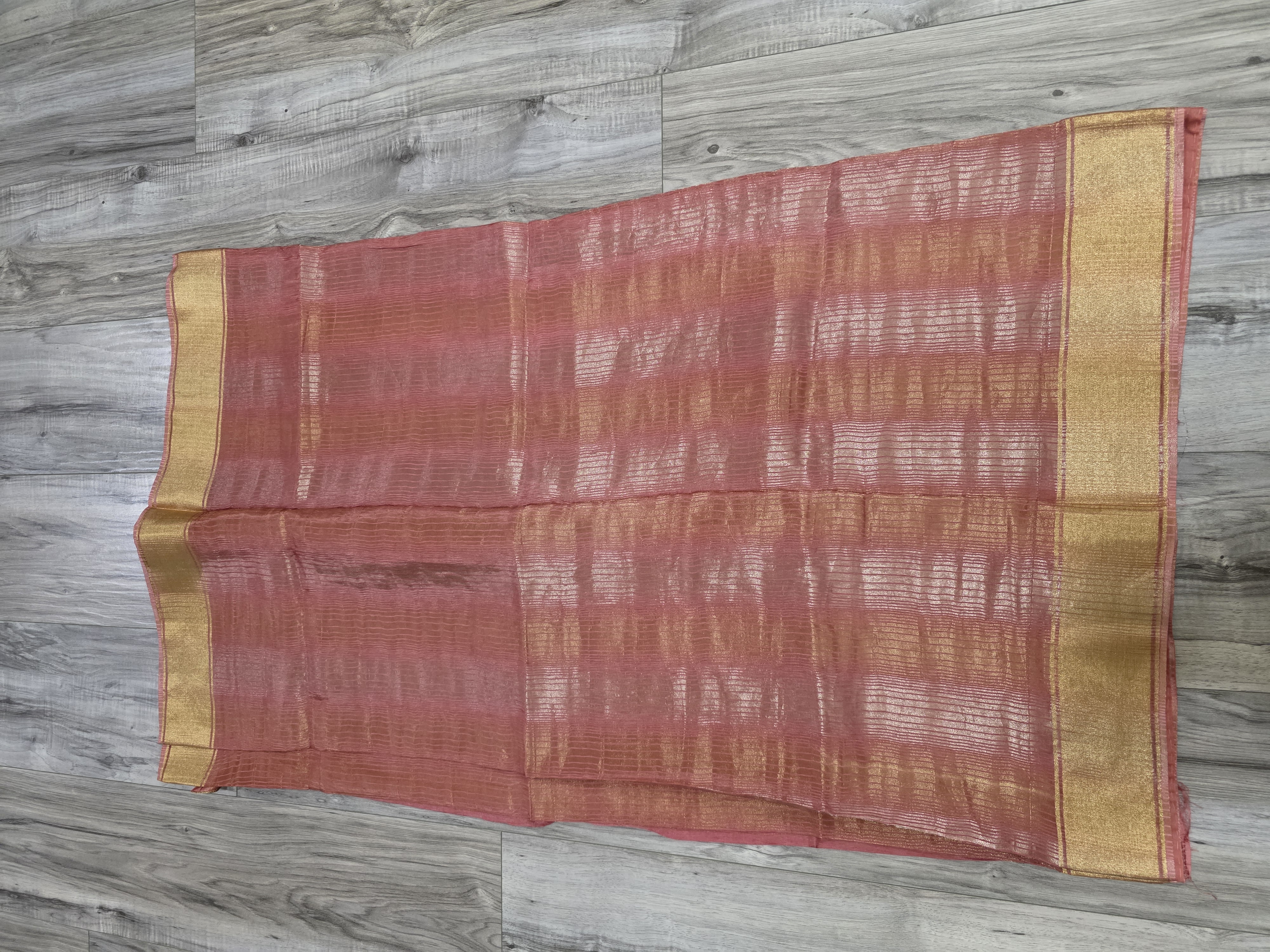 This light pink banarsi crush fabric sari is very light weight and soft and easy to drape.