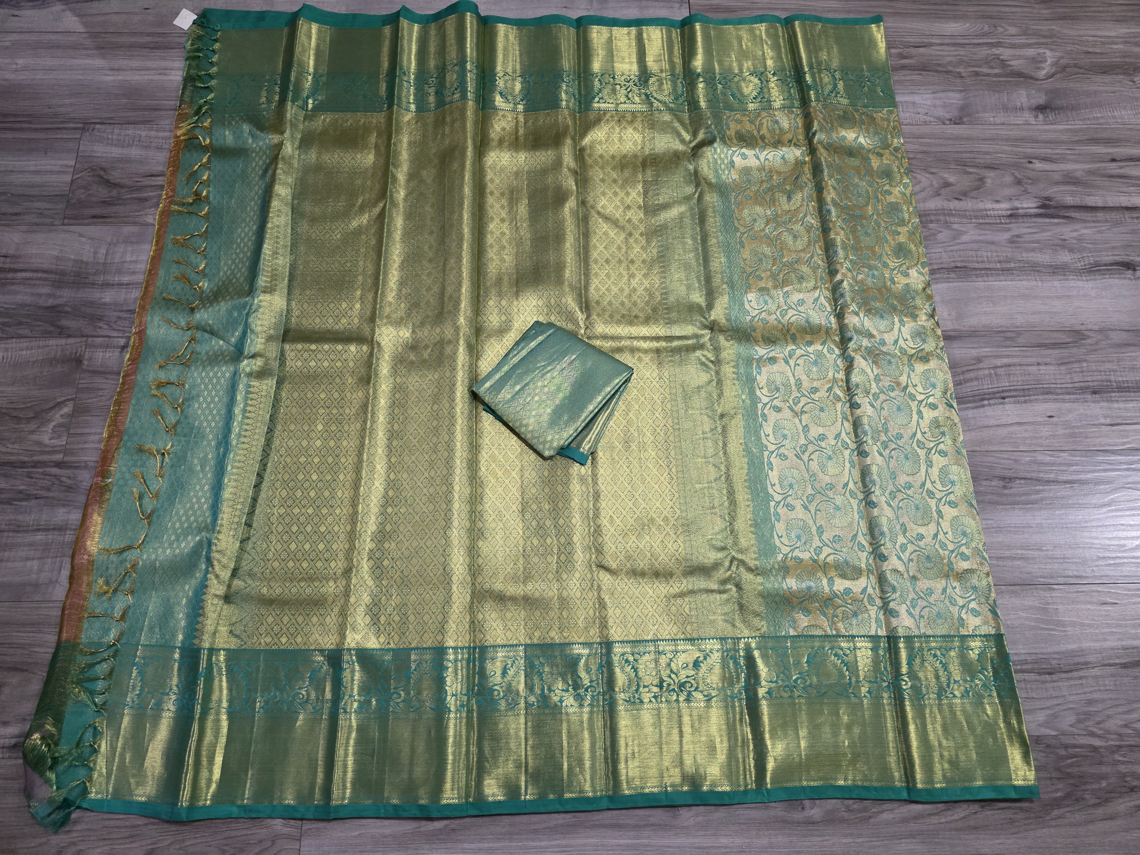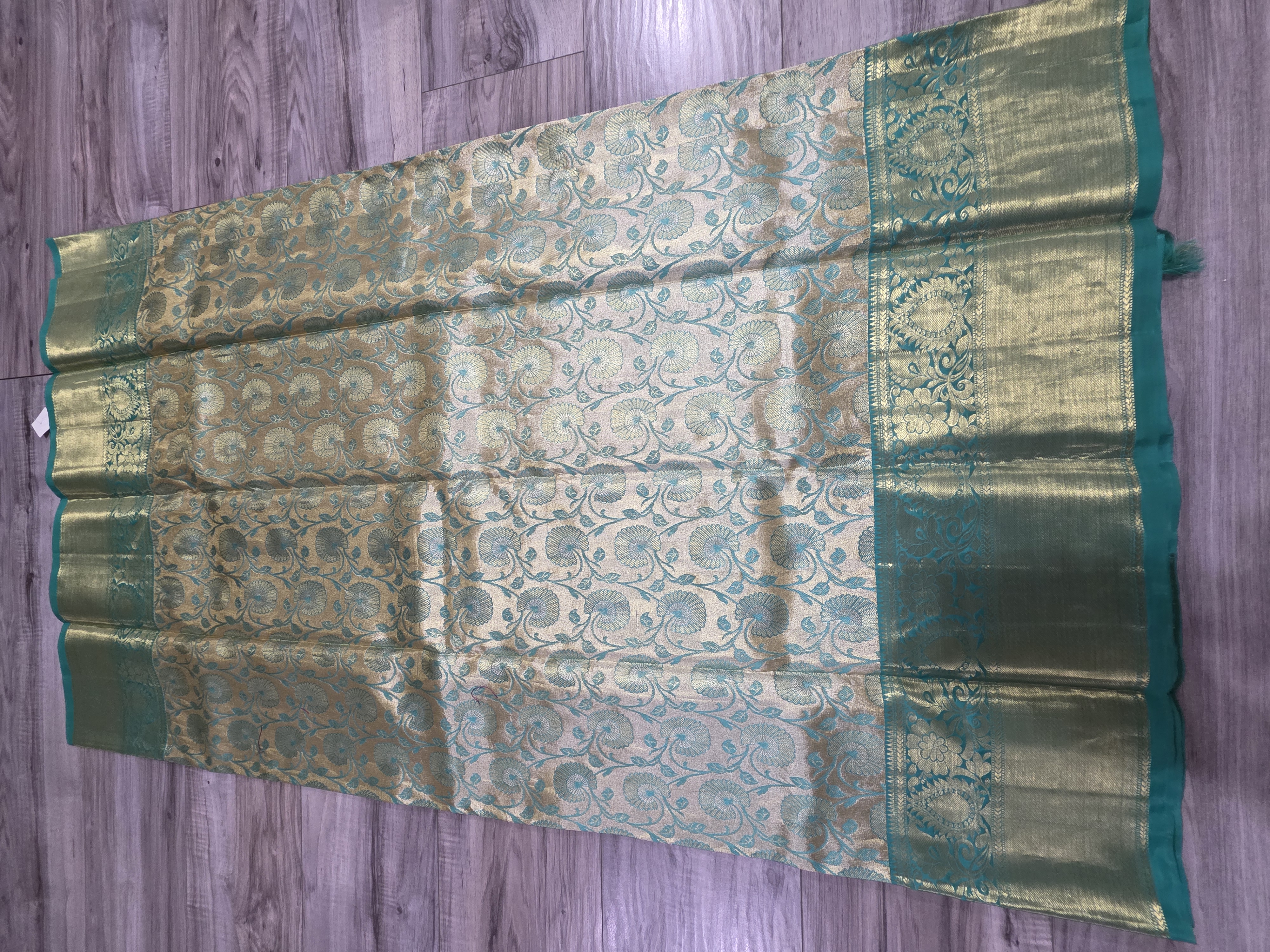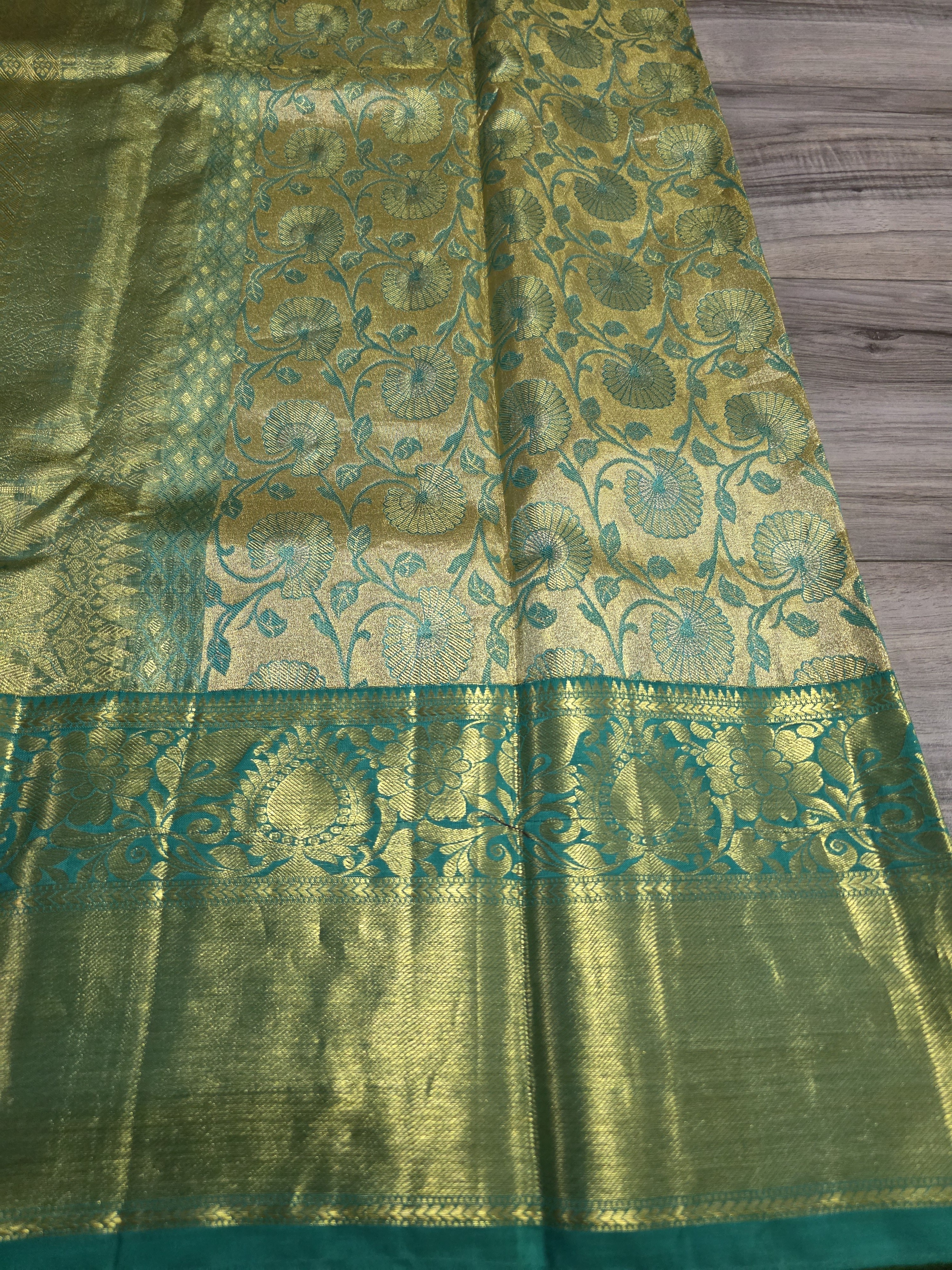 Mint green and gold pure kanjivaram silk sari
