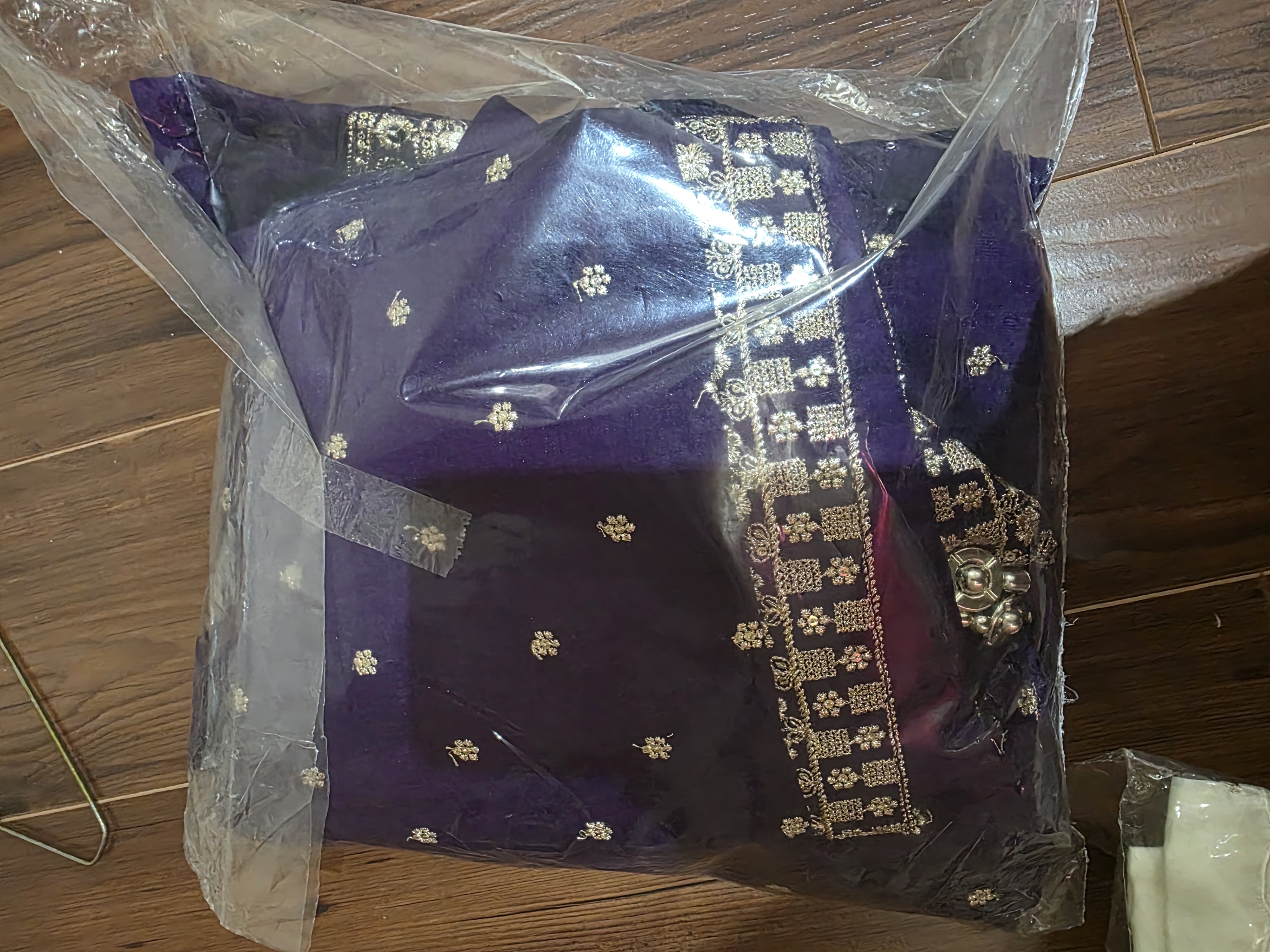 This is a stunning long tunic featuring a center-slit design and intricate gold zari work embroidery along the front and hem, paired with a matching embellished dupatta. Avaliable in purple and sea- green color