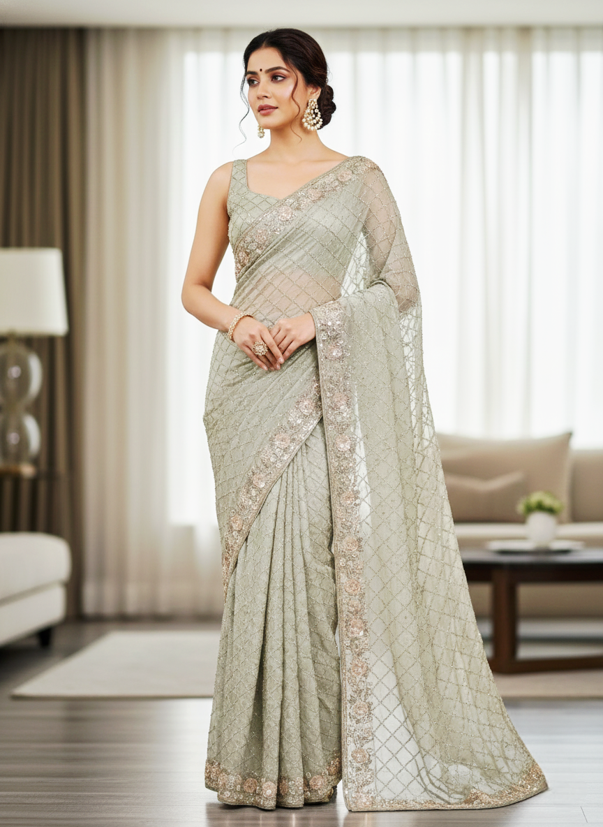 This festive ensemble features a vibrant mustard yellow floral-print corset top with gold-embellished straps, paired with matching wide-leg sharara pants and a heavy gold-bordered dupatta, all three pieces made in pure banarsi silk material