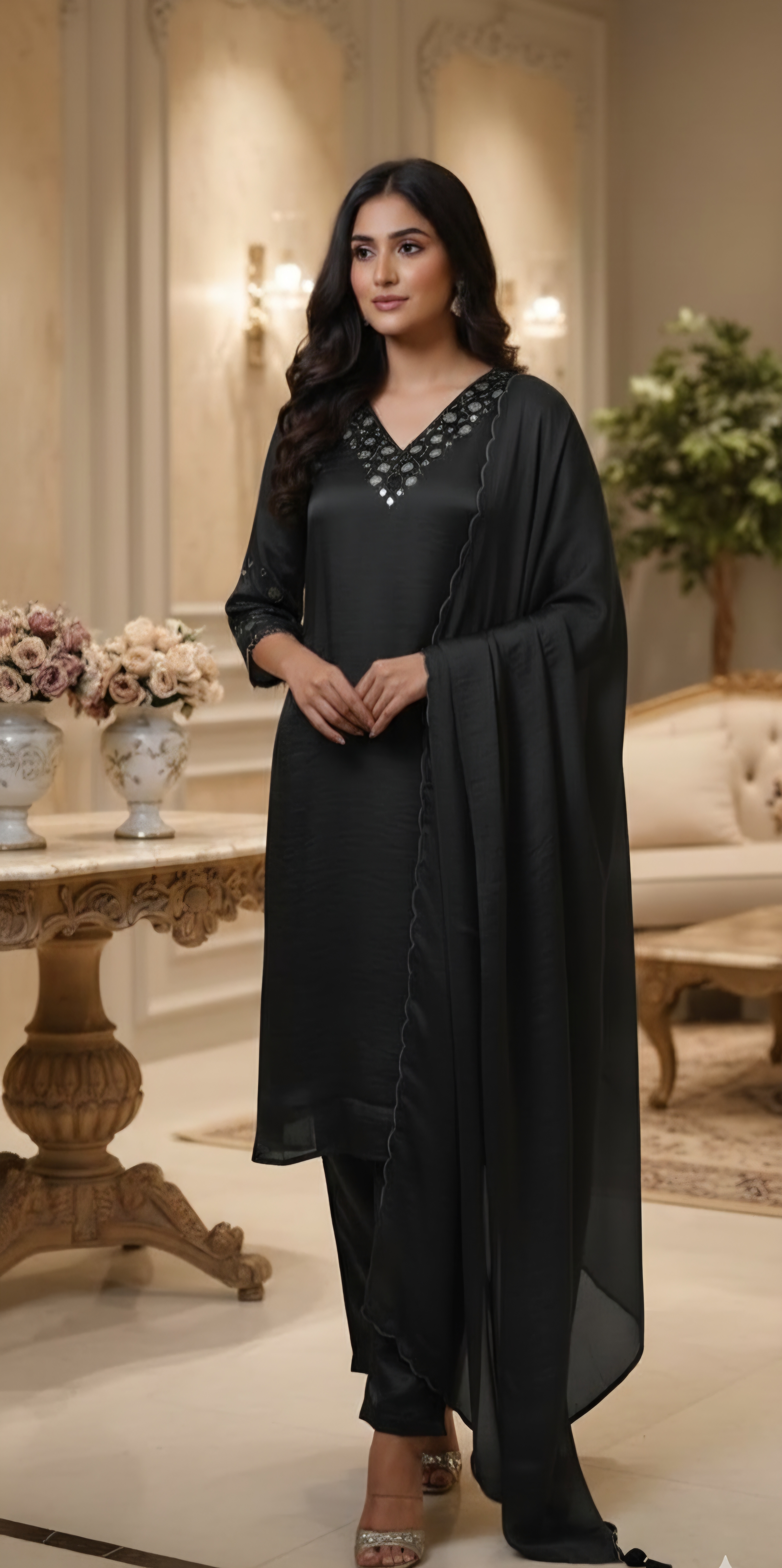 This refreshing lime green ensemble features a sleeveless crop top and high-waisted wide-leg trousers, both accented with delicate pink floral embroidery. The look is layered with a matching sheer, full-length jacket that features long sleeves and coordinated floral motifs along the lapels and hem.