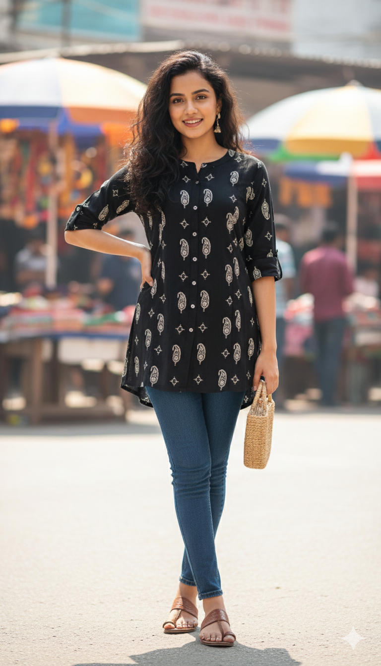 A vibrant mustard yellow kurta featuring a white floral botanical print