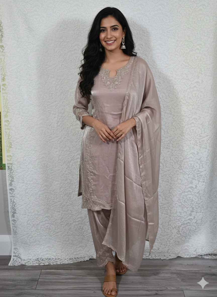 Peach slub fabric kurti