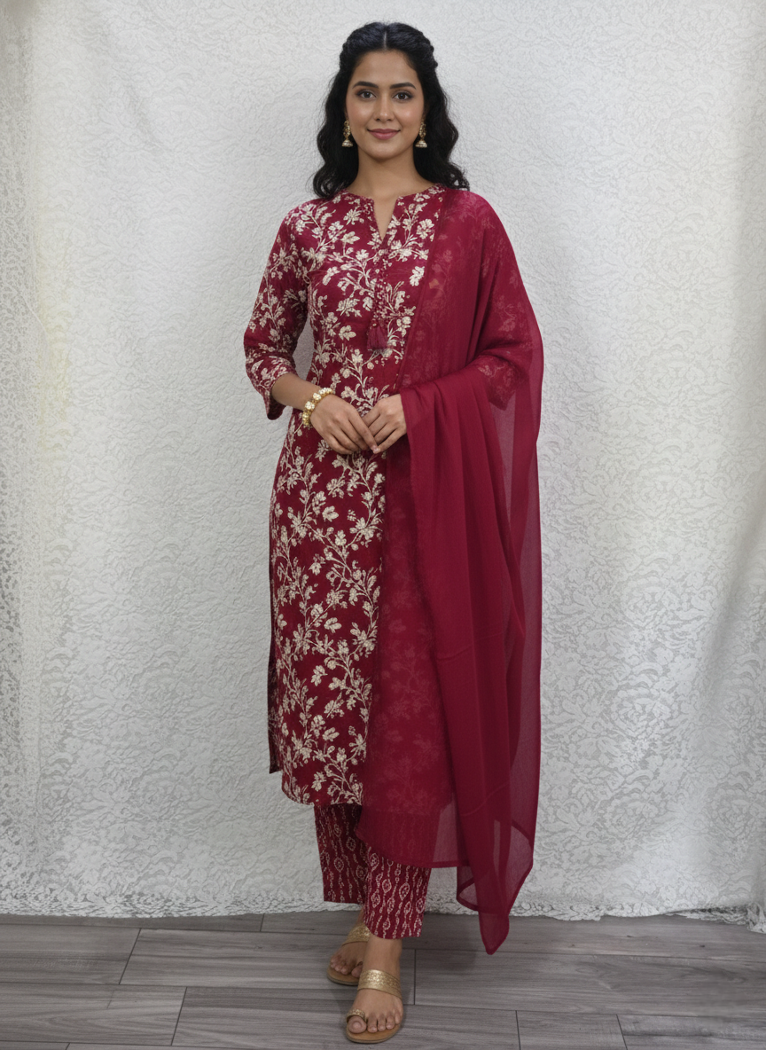 Red rayon chickenkari embroidery kurti