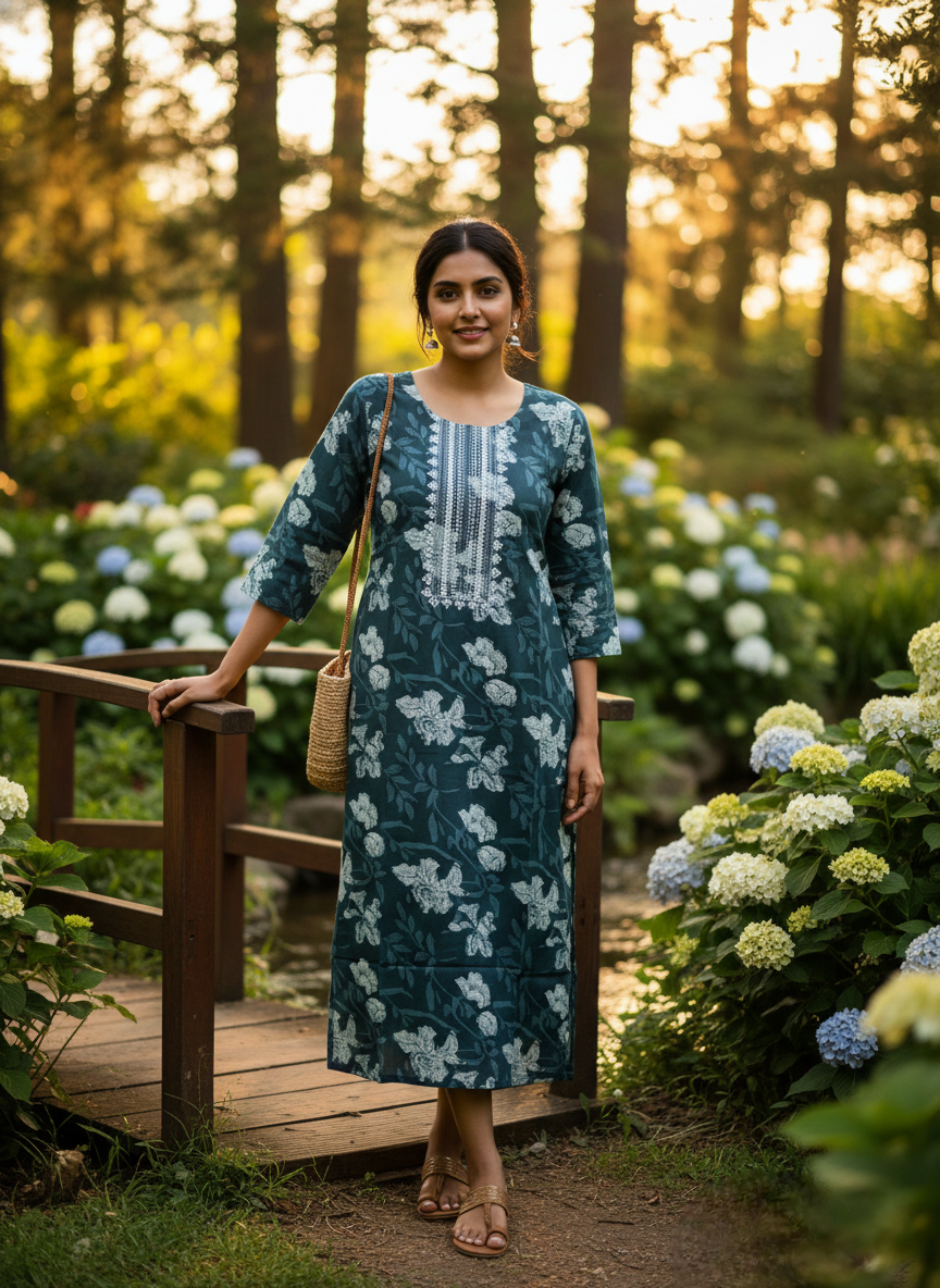 These tunics feature elaborate floral embroidery framing a buttoned placket and scattered across the fabric in various colors.