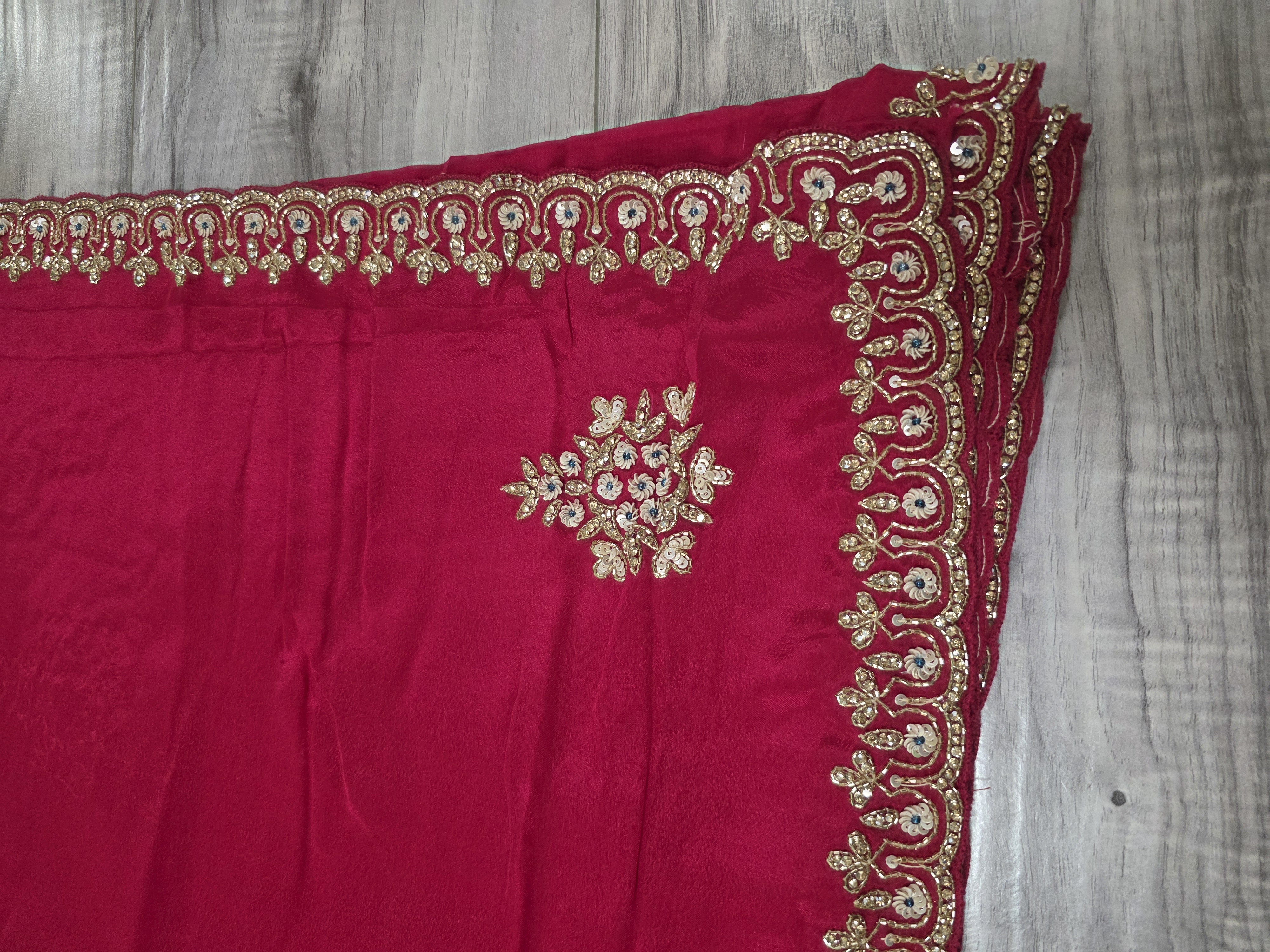 Magenta fancy crape silk sari