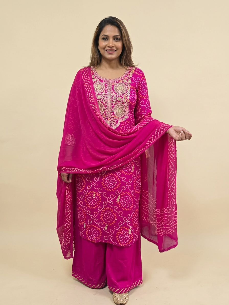 Hot pink banarsi Dola silk sari