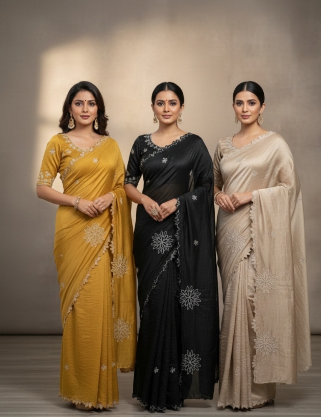 An elegant sea green silk Banarasi sari featuring intricate gold zari floral borders and a matching embellished blouse.