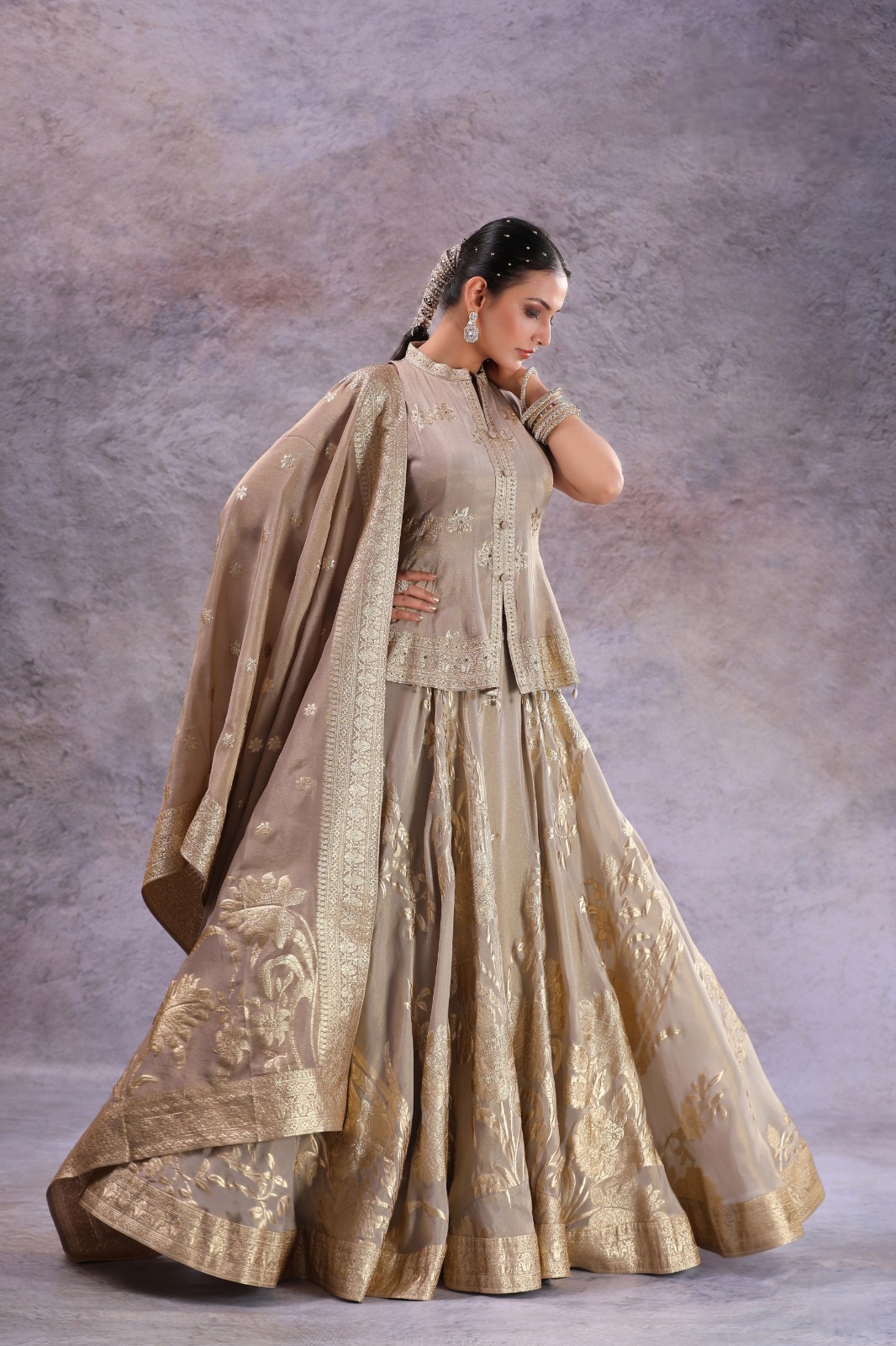 This pure tussar silk sari features a rich, naturally textured weave adorned with vibrant, hand-embroidered Lambani (Banjara) motifs and intricate work along the borders.