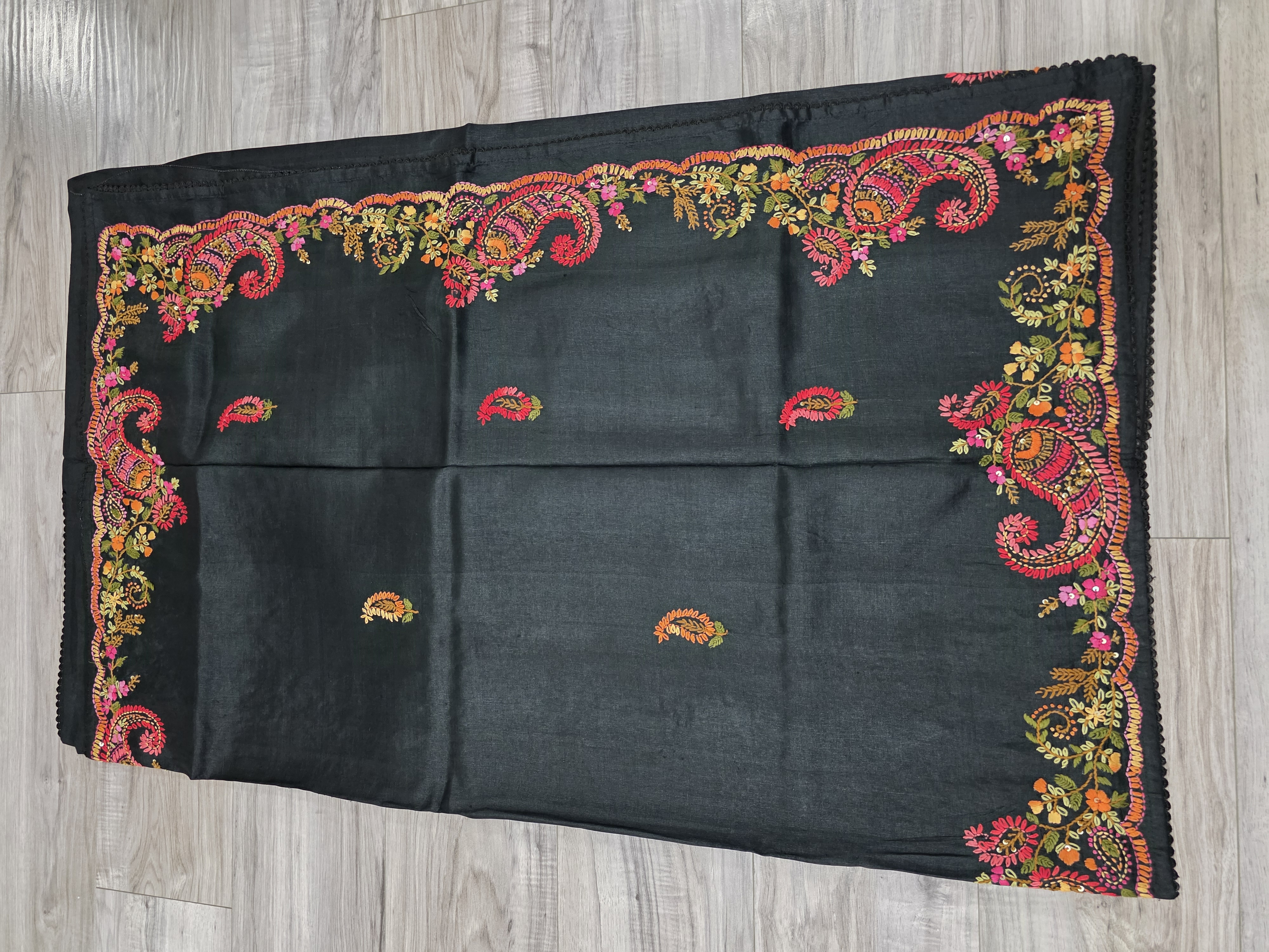 Black pure tussar silk lambani sari