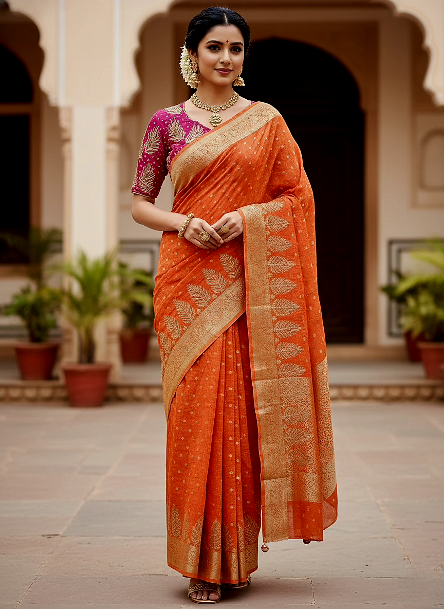 Beige linen tissue lambani sari