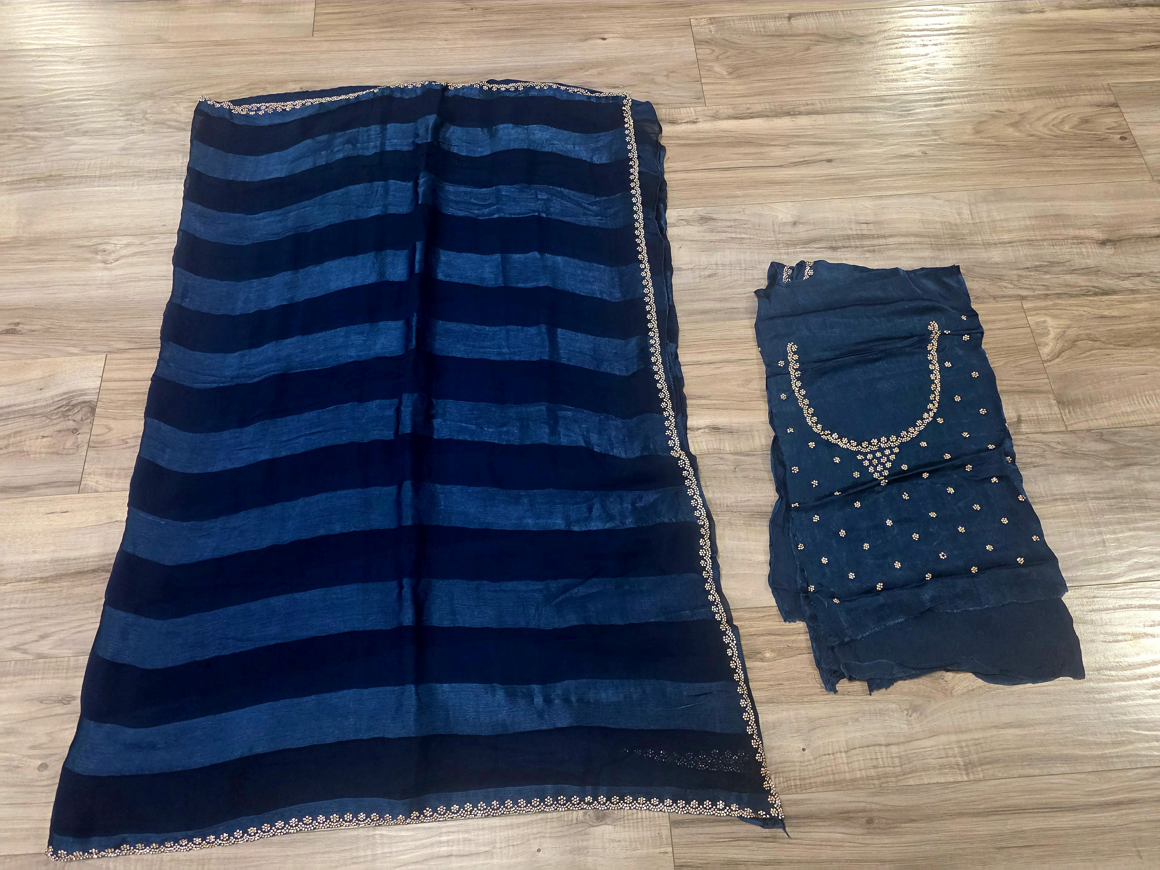 Royal blue striped gorgett sari