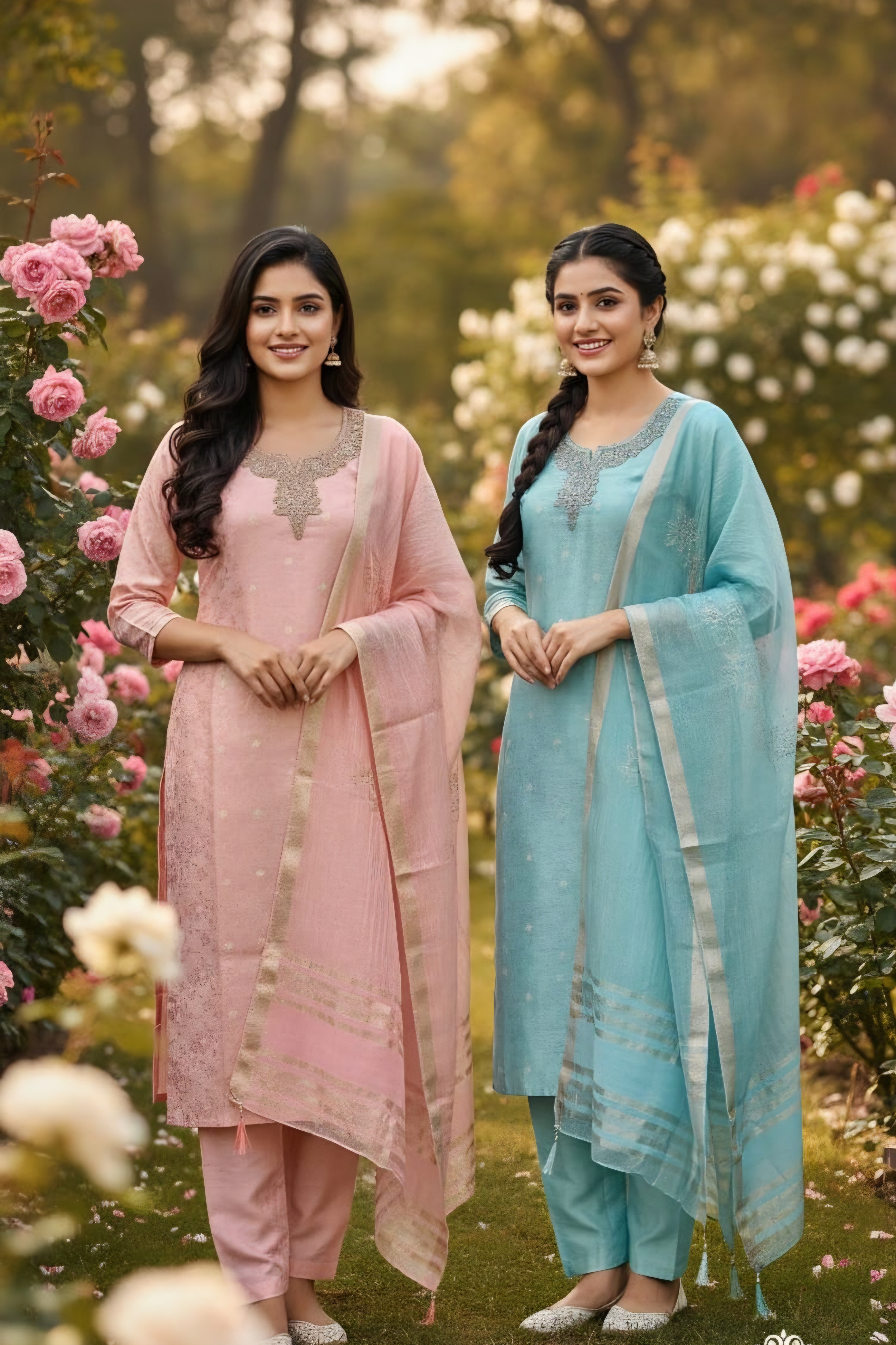 Magenta Fendi gorgett sari