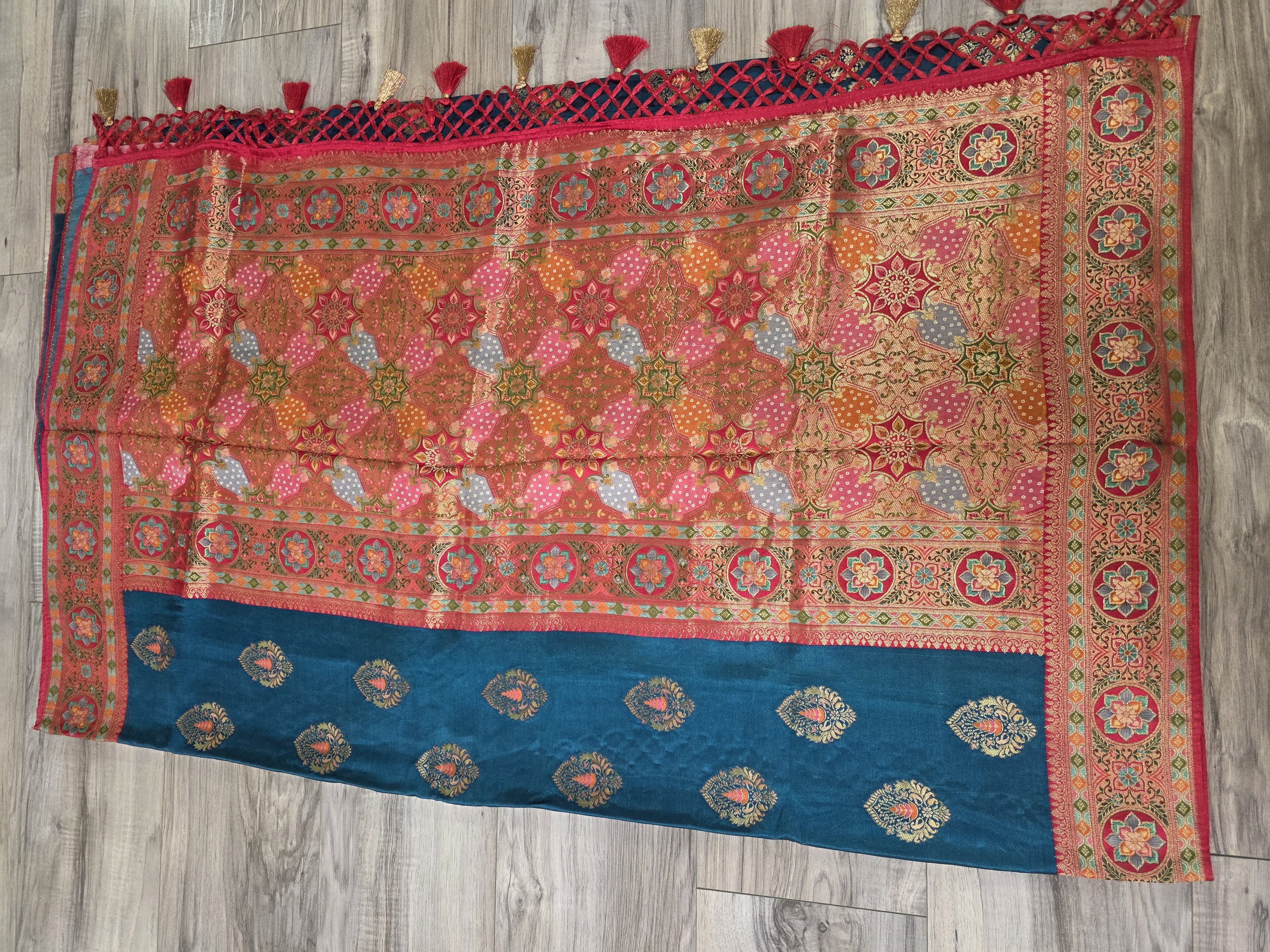 Teal blue banarsi position silk sari