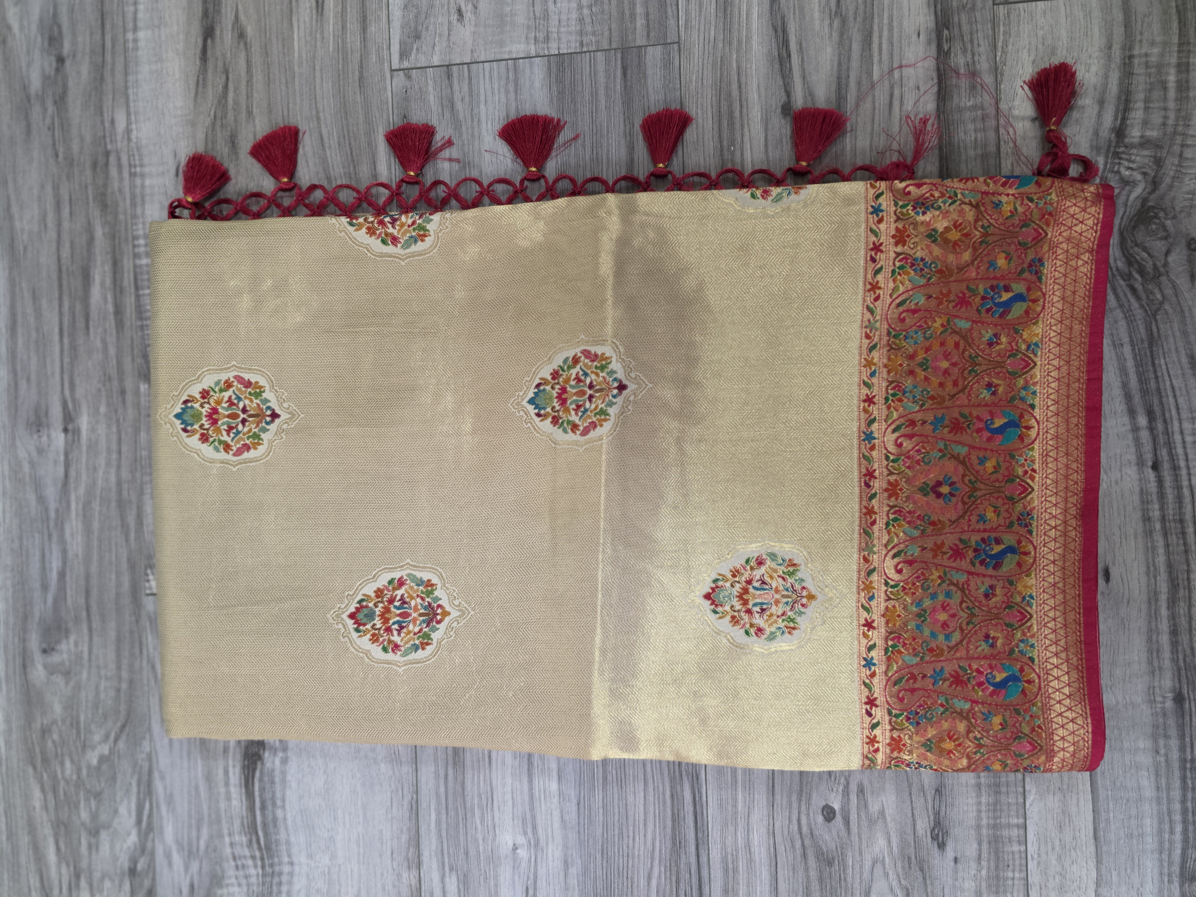 Cream Banarsi position silk sari