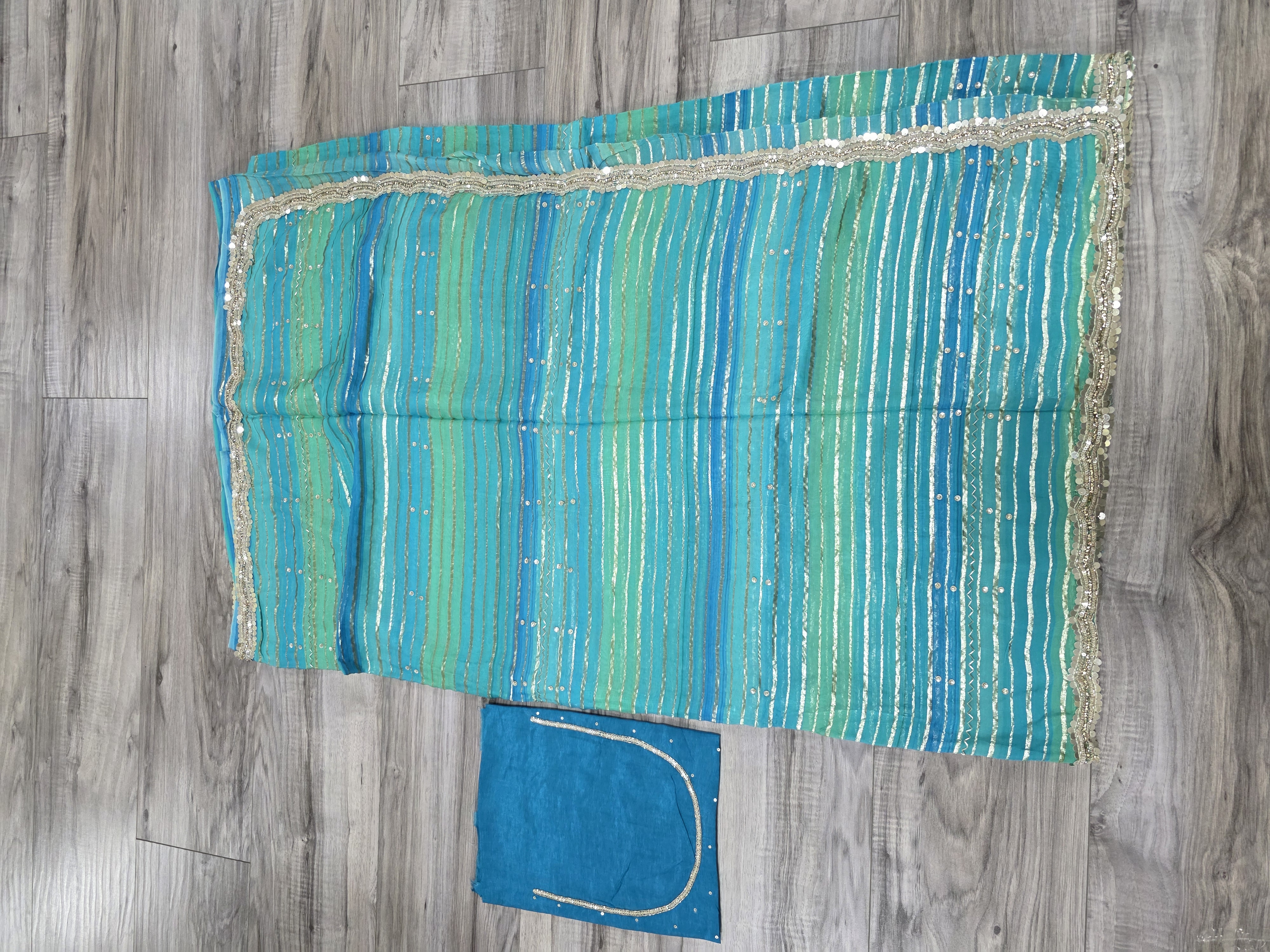 Turquoise blue gorgett sari