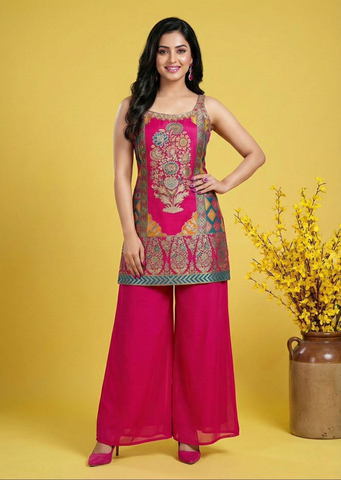 Dusty pink organza embroidery sari
