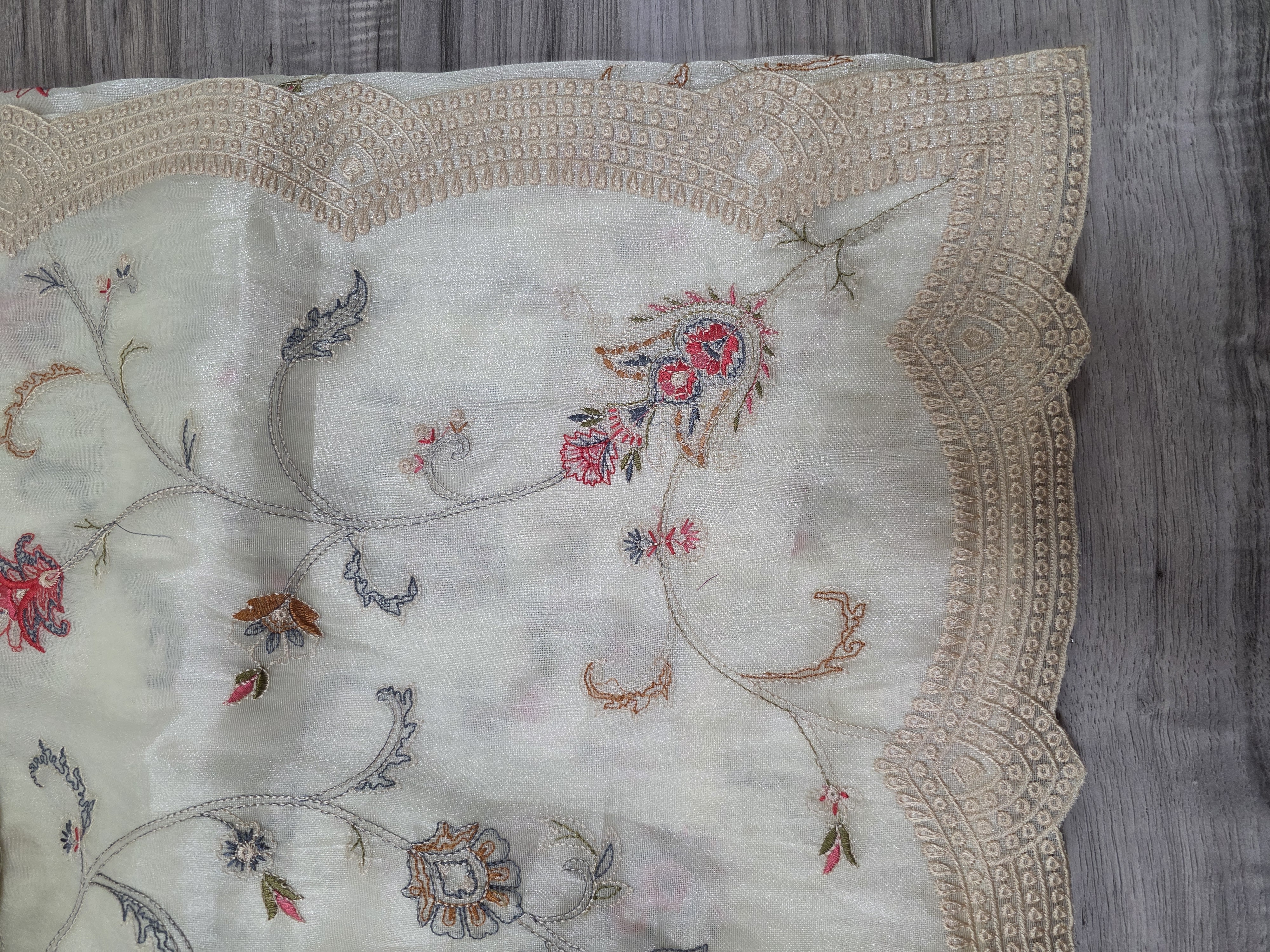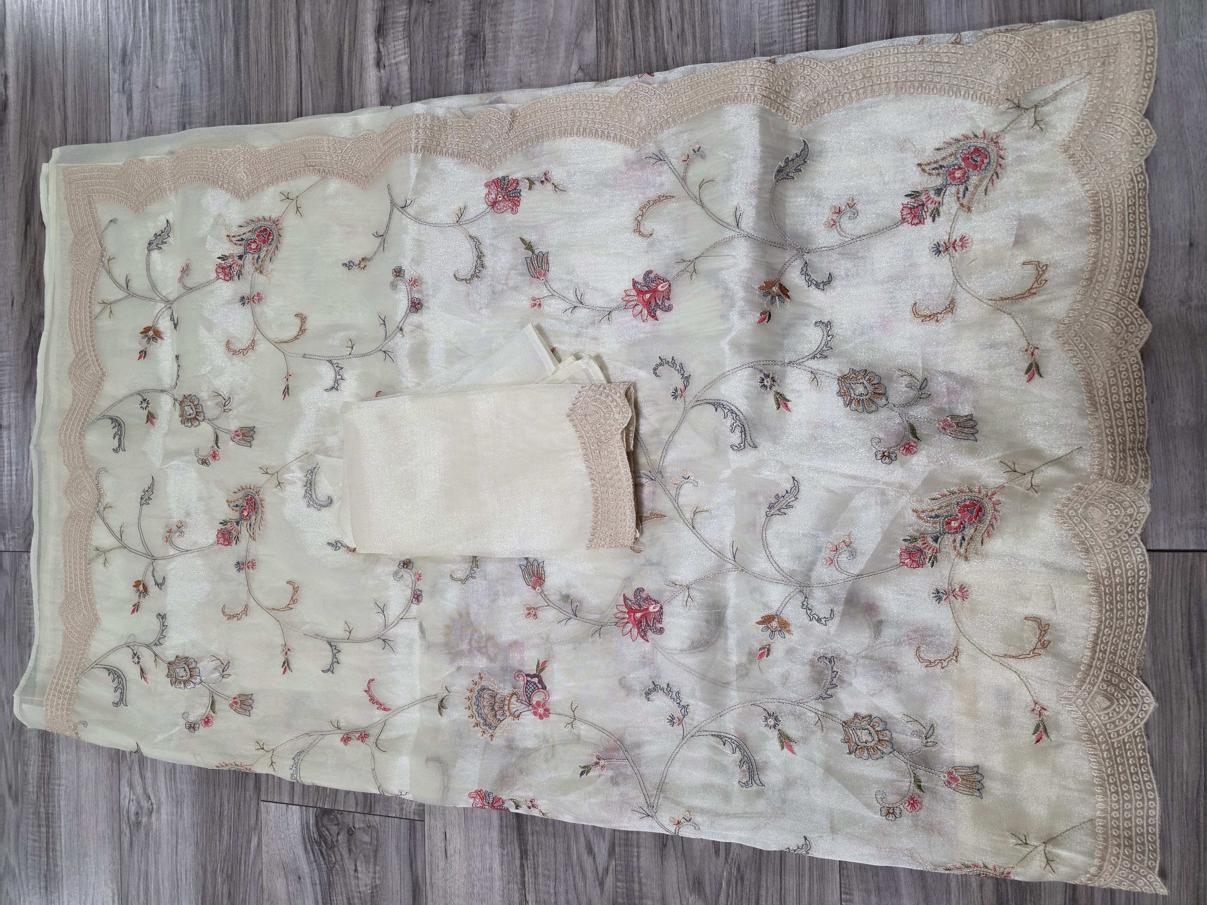 Off white organza embroidery sari