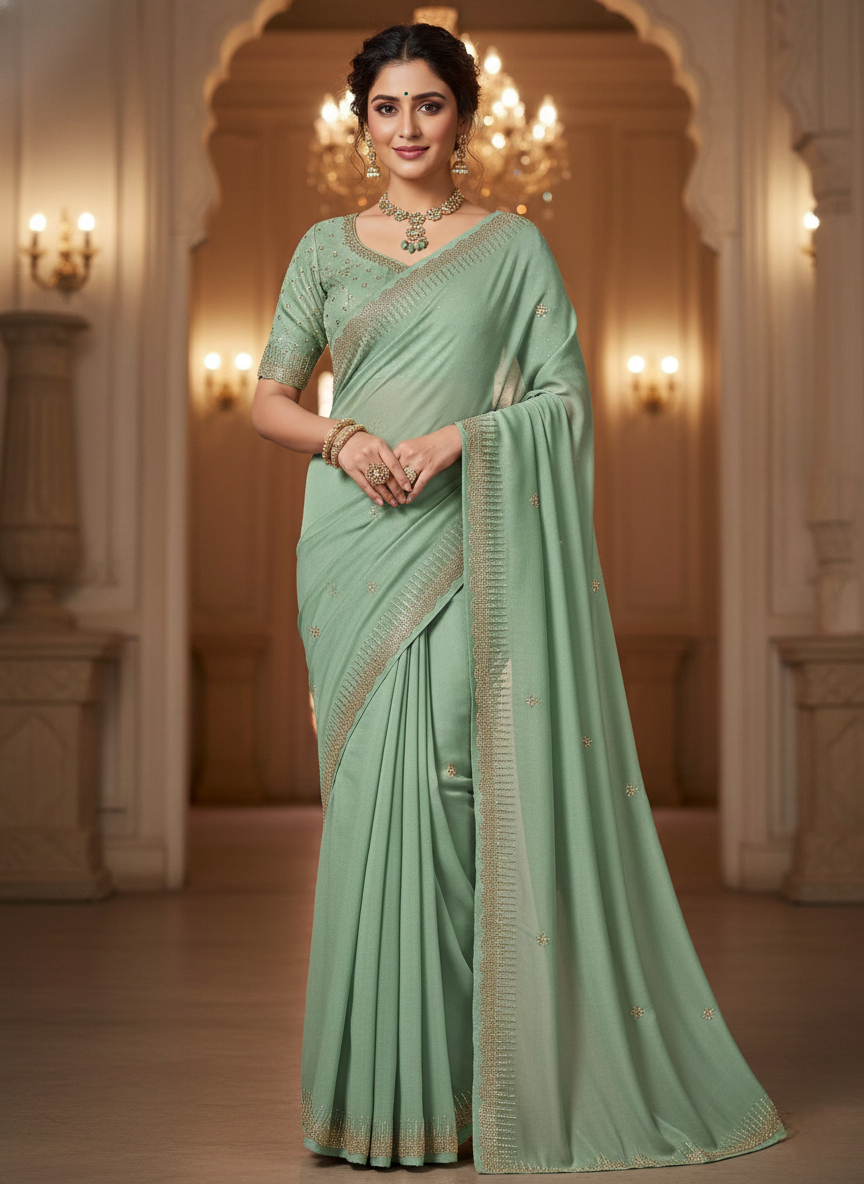 Teal green lambani embroidery sari