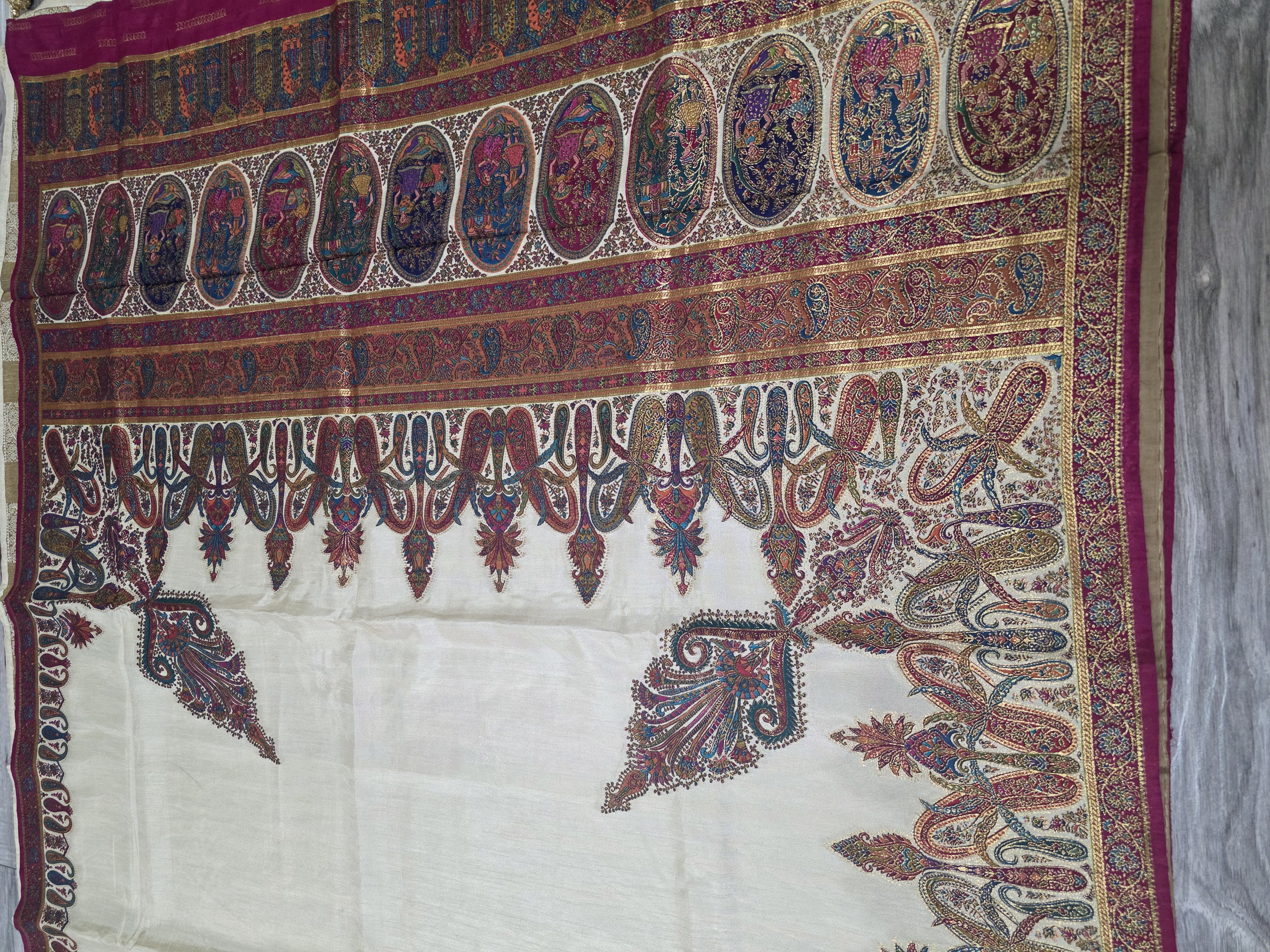 This is plain shimmer silk material blouse with elbow sleeves
