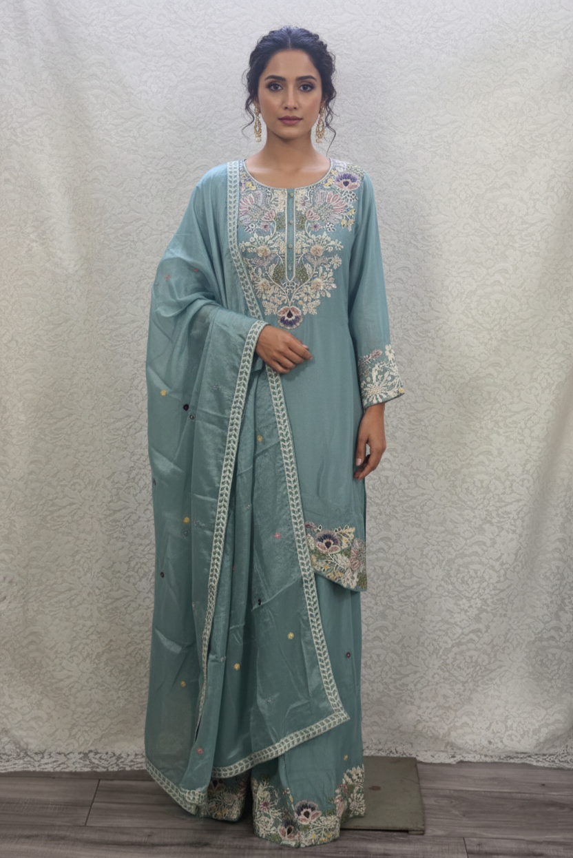 Straight Kurta with Sharara and dupatta in Banarsi silk fabric