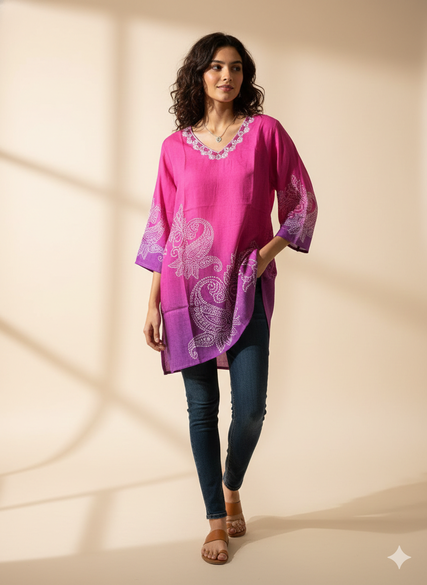 Pink rayon printed kurti