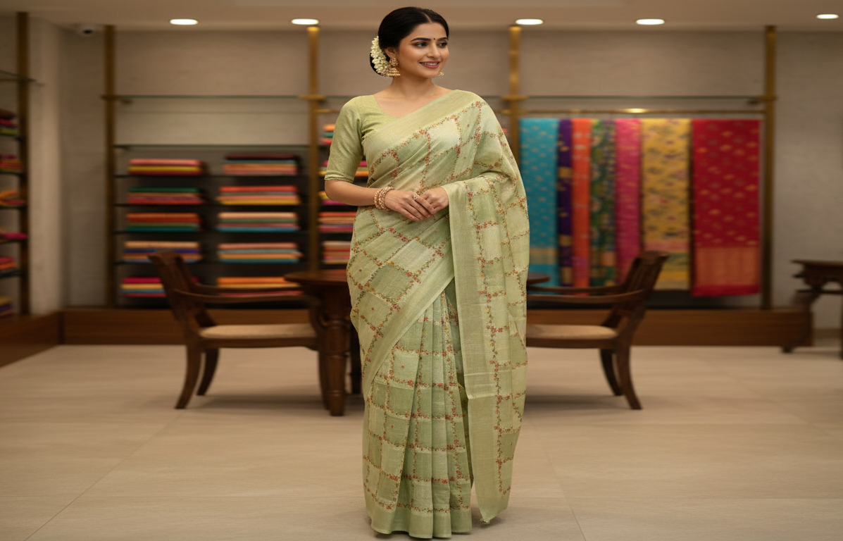 Sage Green hand paint kota zari sari