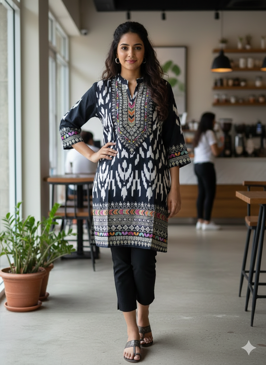 Black printed rayon kurti