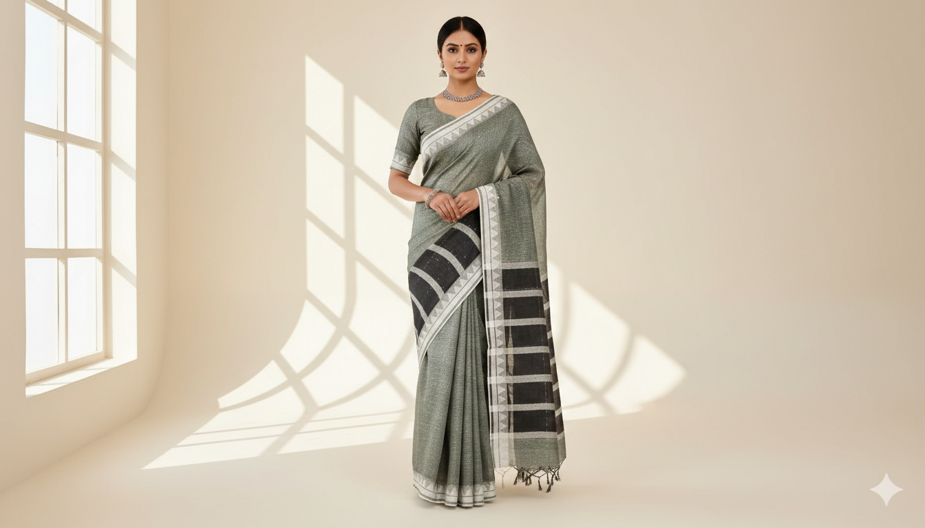 Sage Green linen sari