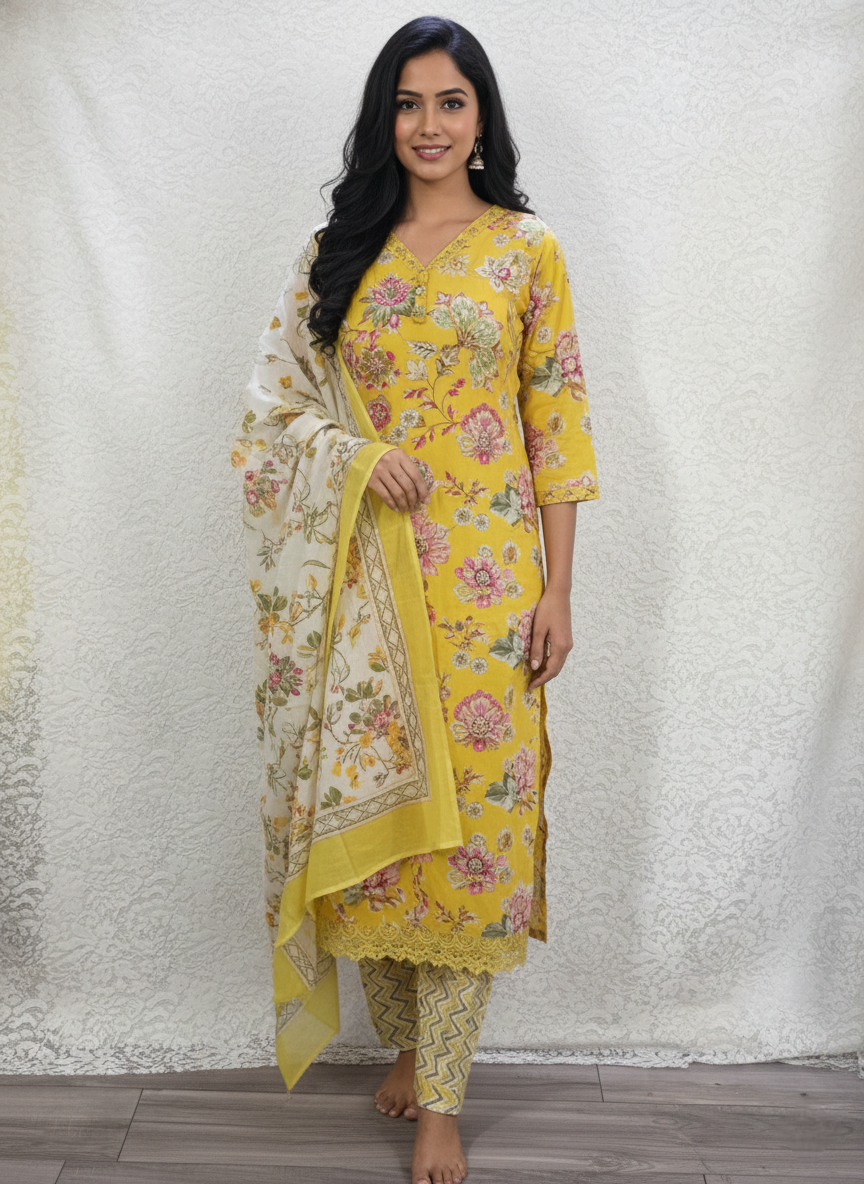 Straight Kurta with pant and dupatta Kurta make in soft jacquard silk , pant in plain soft silk material and dupatta in organza fabric Fine zari dori work on all three pieces.