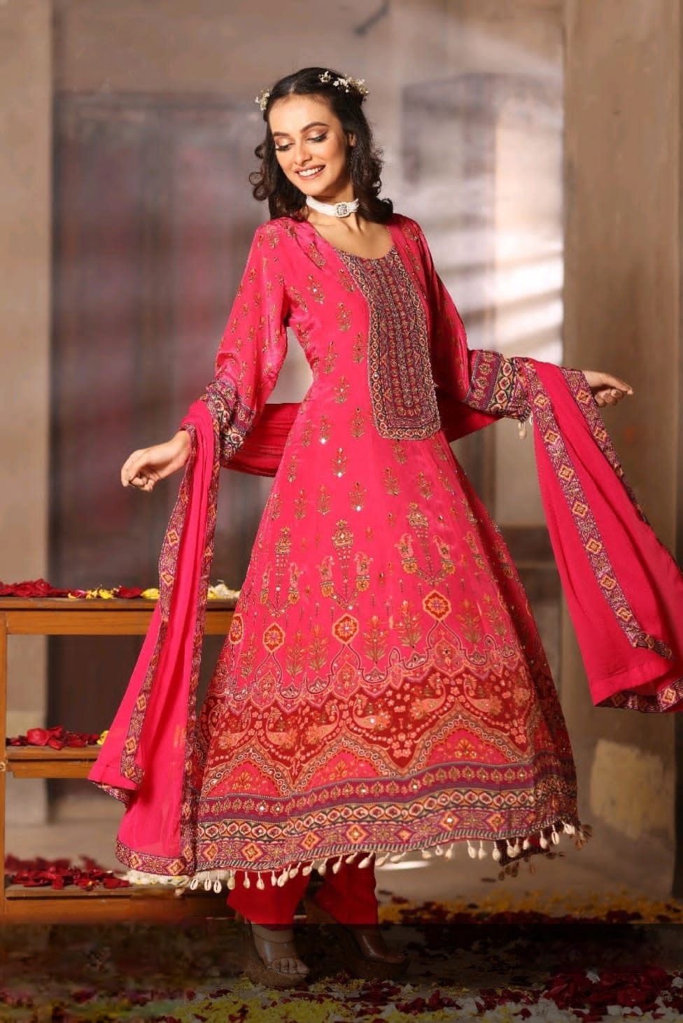 Hot pink Anarkali Suit Set