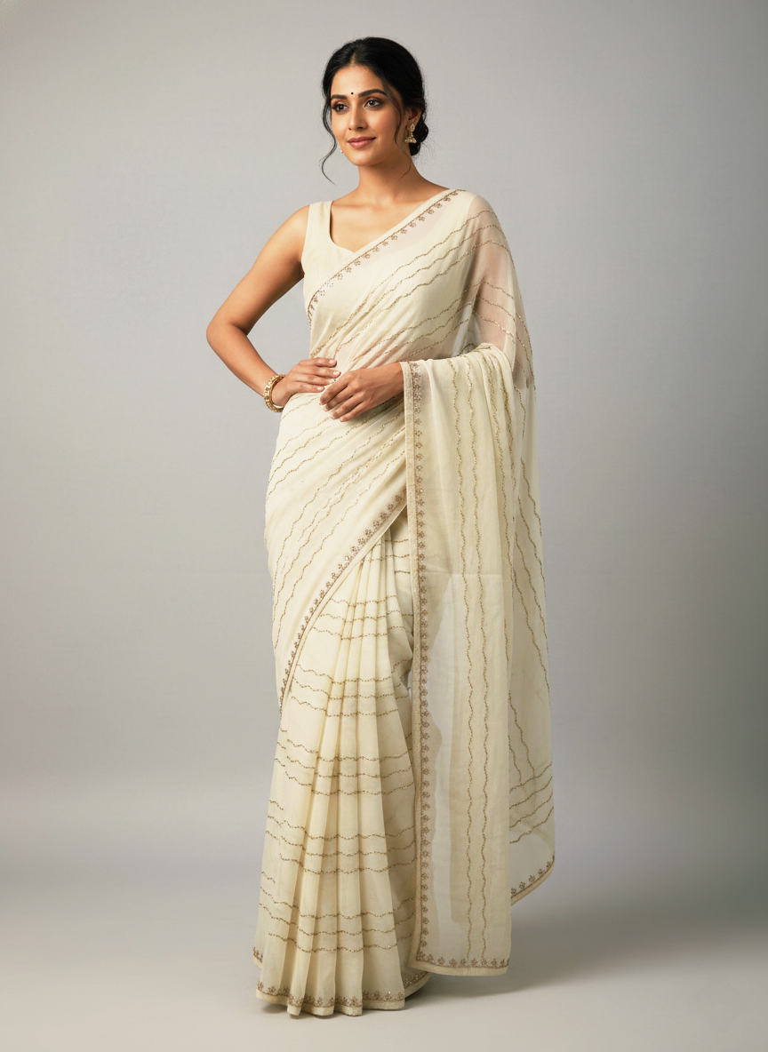 Bandhni saris are known for their vibrant and cheerful colors. It is a traditional Indian tye and dye method used in creating intricate patterns with natural dyes. This orange color bandhni sari is made in pure chinon silk fabric with fine zari, sequin and kutdana work all over