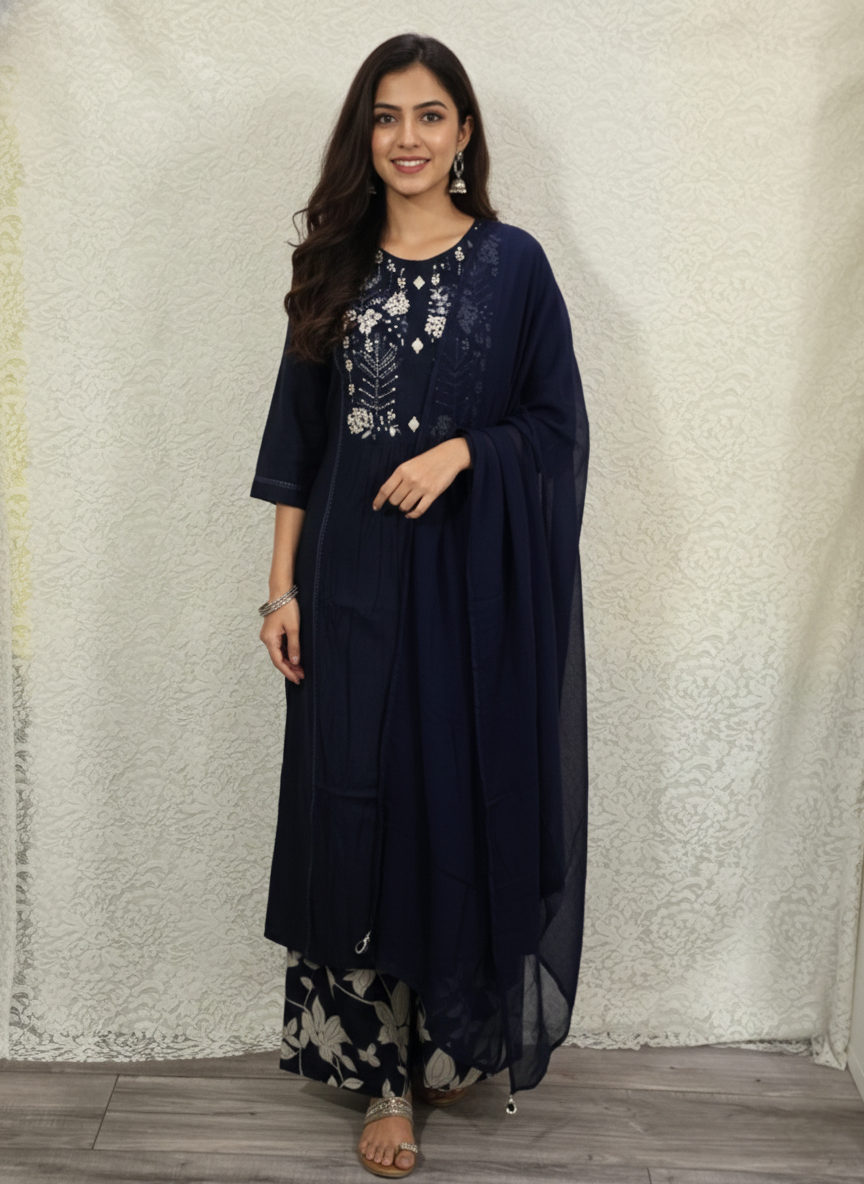 This hot pink sari is made in soft subtle banarsi dola silk fabric. It has rhine stone work all over along with hand kutdana work on borders and anchal. Perfect for special occasions, weddings and festivals.
