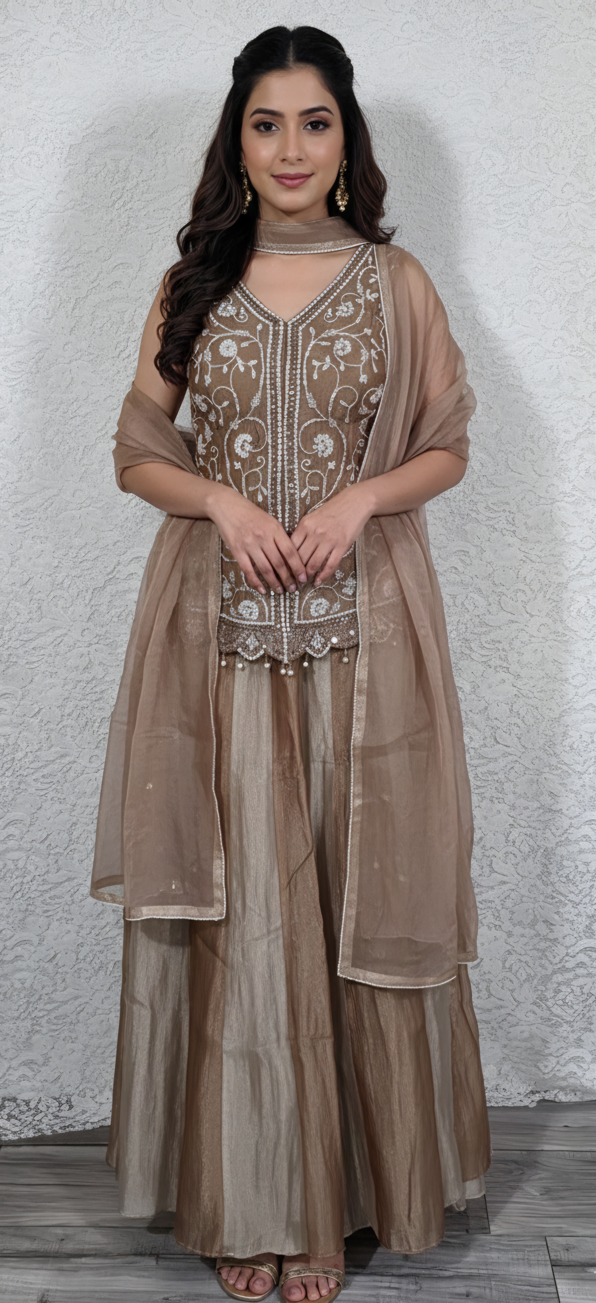 Cream Anarkali Dupatta Set