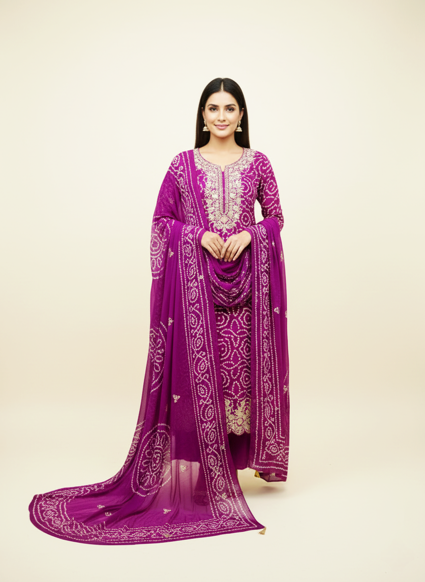 This sea green anarkali suit is made in shimmering soft silk material with multi color thread embroidery and banarsi floral dupatta