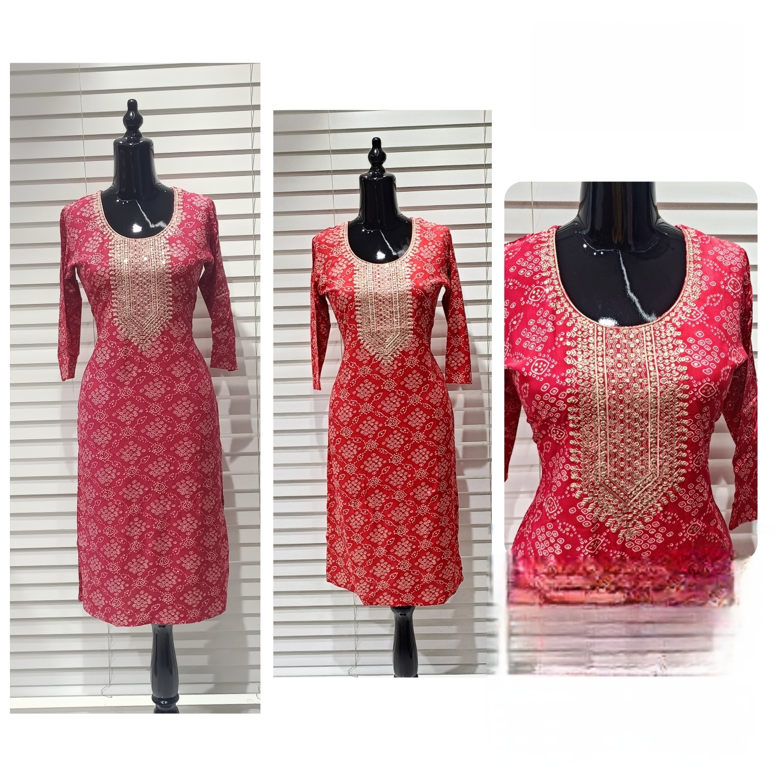 This floral print sari is made in pure crape silk fabric with cream color foil work embroidered blouse and scalloped border all around the sari.