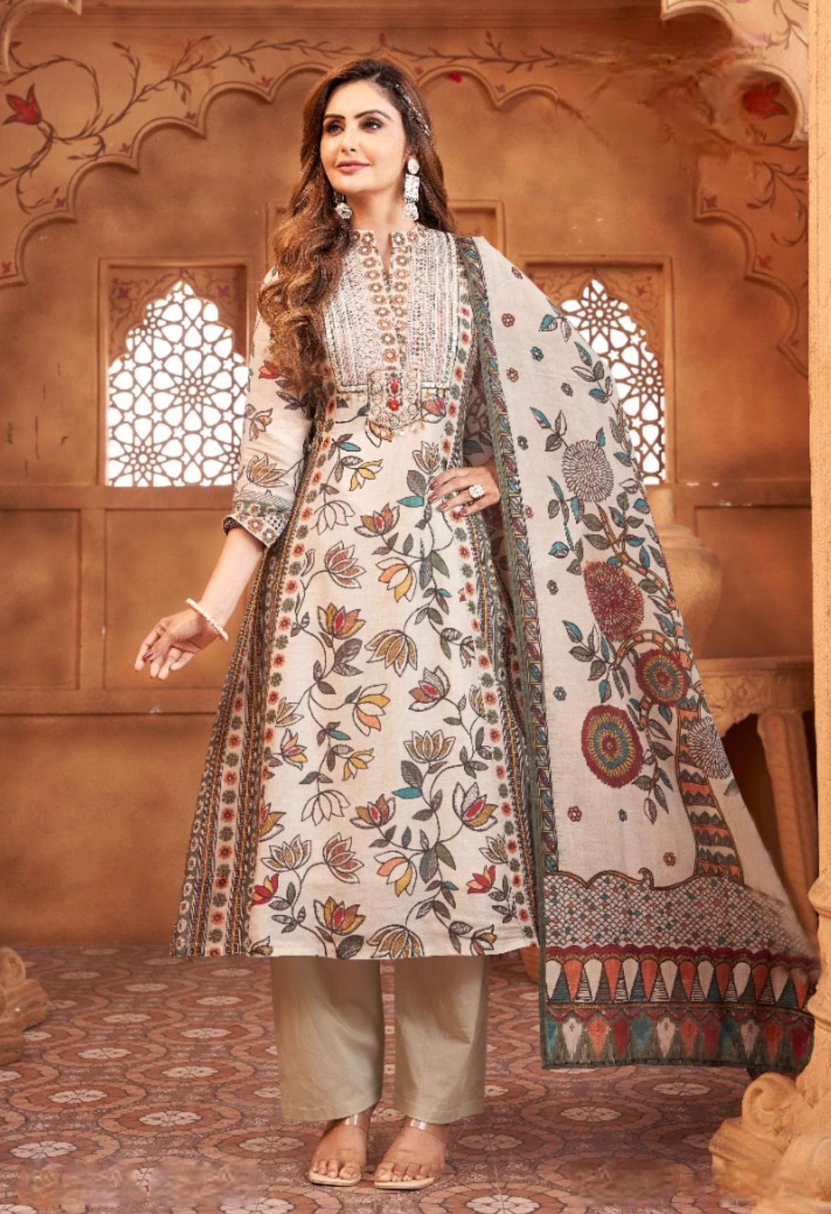 This mauve straight kurta with sharara and dupatta are made in pure crape silk material. Kurta has find hand sequin, pearl amd kutdana work all around.